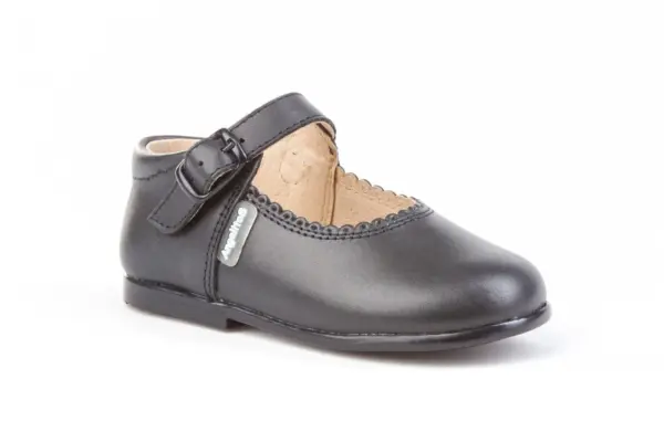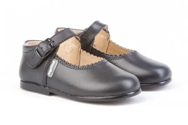 Las merceditas de siempre, suaves y blanditas. Ideales para los pies de los más pequeños. Zapato tipo mercedita fabricado en napa de piel bovina con sistema de cierre de hebilla. La parte interior está fabricada con forro de piel natural, protector de punteras y talones, planta con puente anatómico y suela de goma antideslizante. Calzado diseñado y fabricado en España.