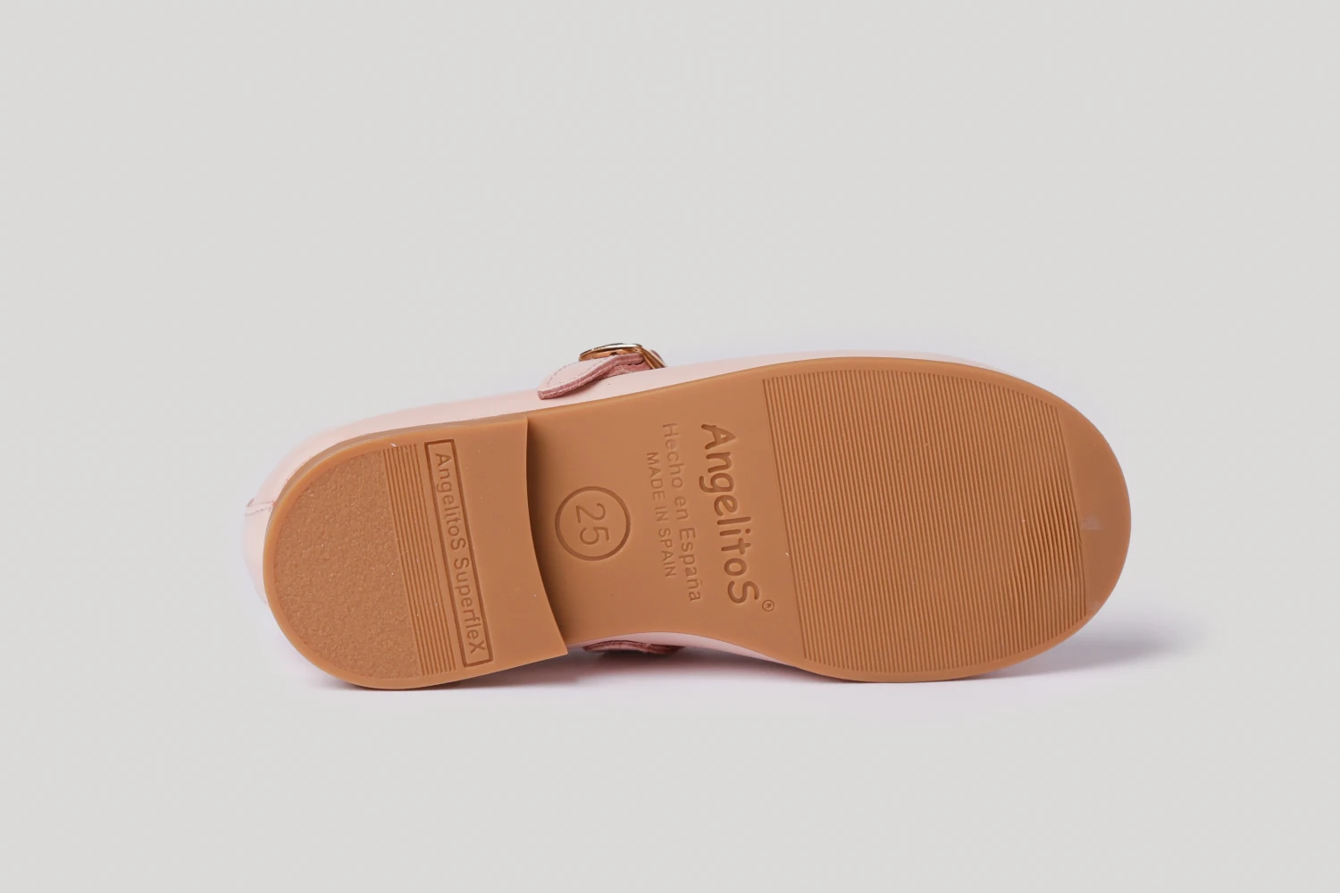 Unas francesitas elegantes, suaves y blanditas. Zapato tipo francesita fabricado en napa de piel bovina con sistema de cierre de hebilla. La parte interior está fabricada con forro de piel natural, protector de punteras y talones. Planta interior con puente anatómico y nuestra nueva suela exterior «AngelitoS SuperfleX» fabricada en TPU antideslizante de alta calidad. Calzado diseñado y fabricado en España.