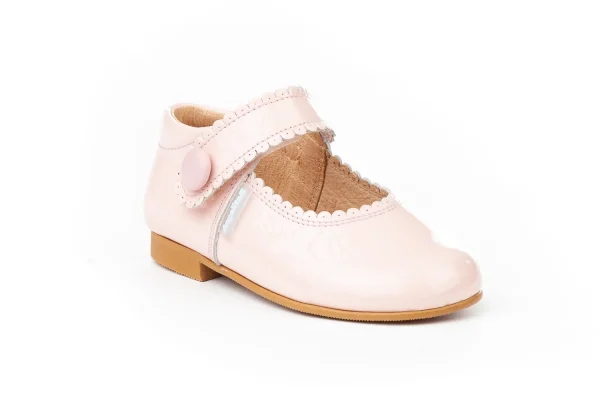 Unas merceditas sofisticadas, suaves y blanditas. Ideales para los pies de los más pequeños. Zapato tipo mercedita fabricado en napa metalizada de piel bovina con sistema de cierre de velcro. La parte interior está fabricada con forro de piel natural, protector de punteras y talones, planta con puente anatómico y suela de cuerolite antideslizante. Calzado diseñado y fabricado en España.