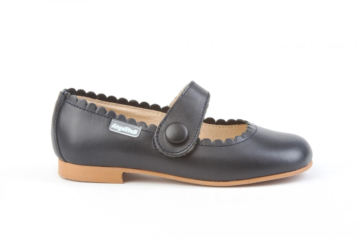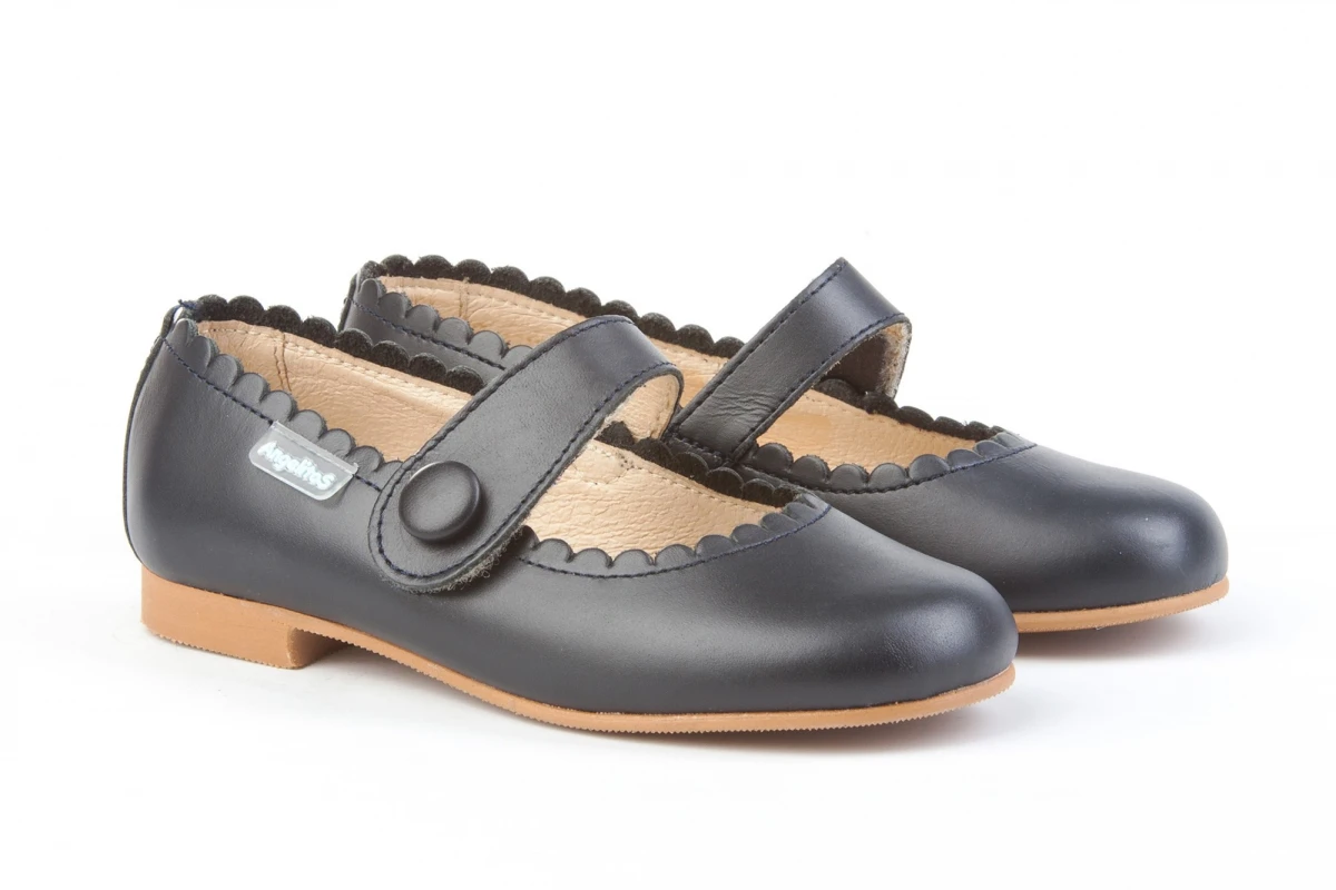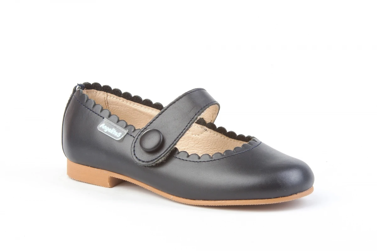 Las francesitas más clásicas, suaves y blanditas. Zapato tipo francesita con adorno en forma de botón, fabricado en napa de piel bovina y con sistema de cierre de velcro. La parte interior está fabricada con forro de piel natural, protector de punteras y talones, planta con puente anatómico y suela de cuerolite antideslizante. Calzado diseñado y fabricado en España.