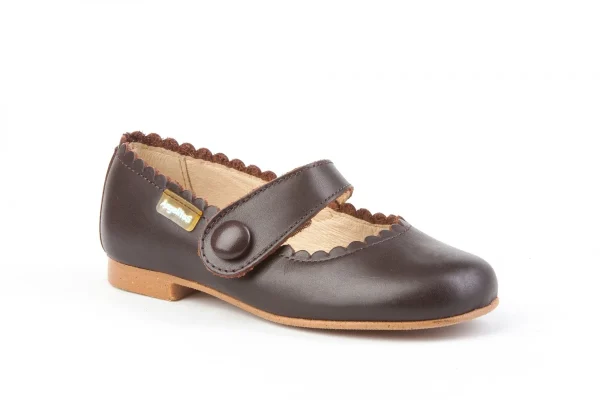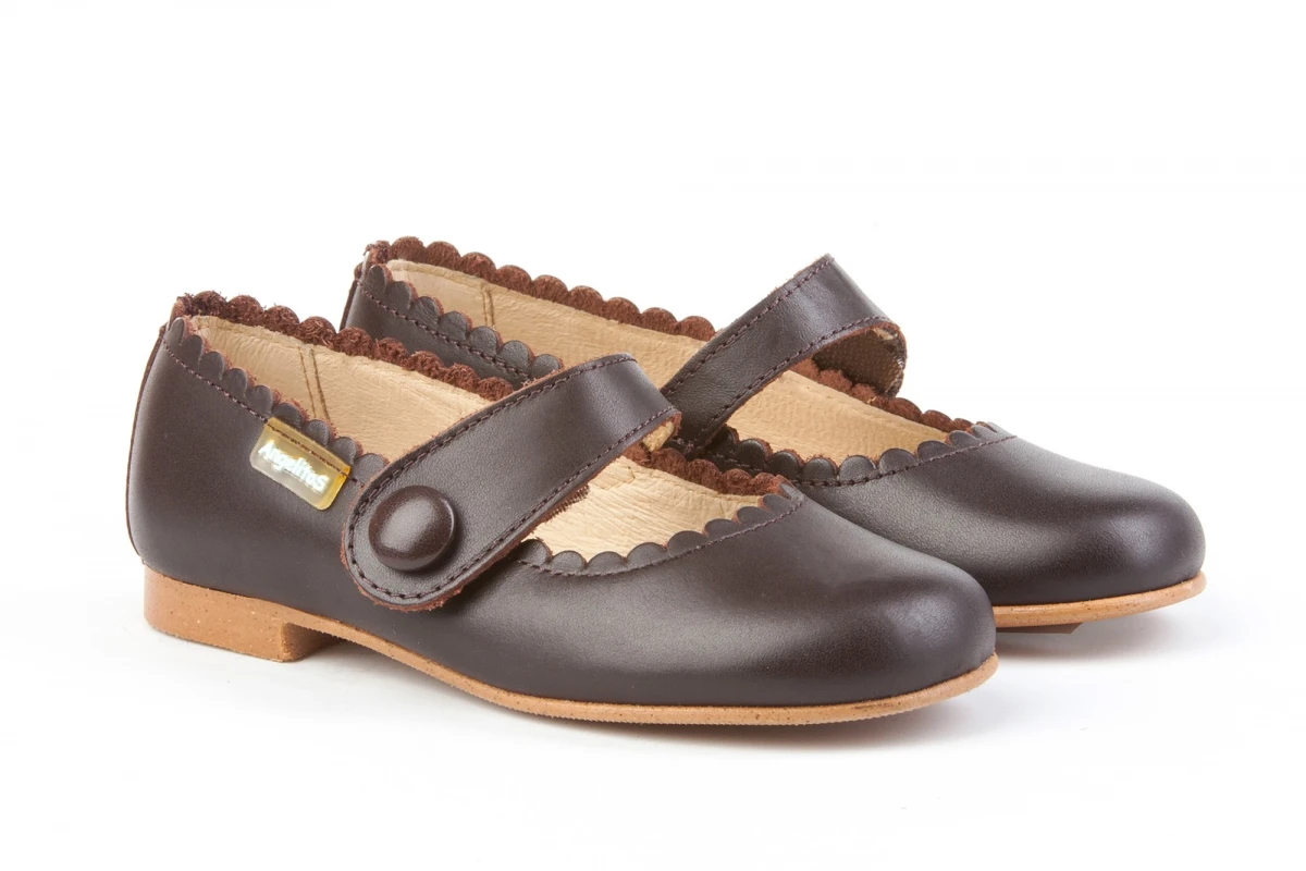 Las francesitas más clásicas, suaves y blanditas. Zapato tipo francesita con adorno en forma de botón, fabricado en napa de piel bovina y con sistema de cierre de velcro. La parte interior está fabricada con forro de piel natural, protector de punteras y talones, planta con puente anatómico y suela de cuerolite antideslizante. Calzado diseñado y fabricado en España.