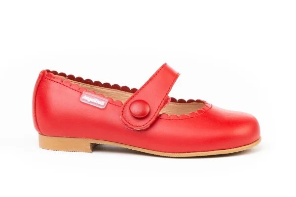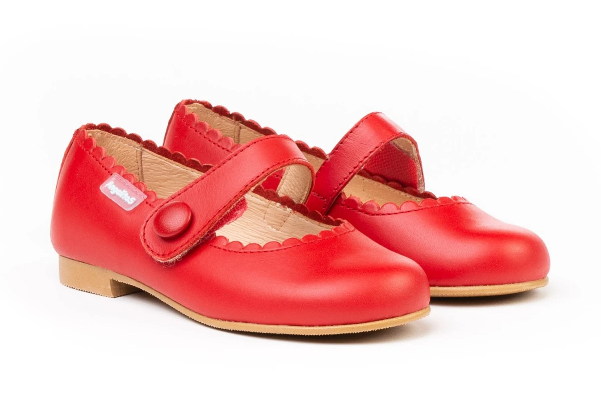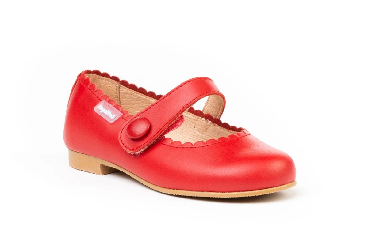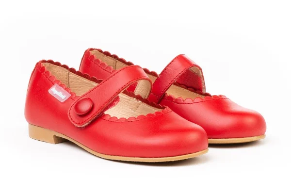 Las francesitas más clásicas, suaves y blanditas. Zapato tipo francesita con adorno en forma de botón, fabricado en napa de piel bovina y con sistema de cierre de velcro. La parte interior está fabricada con forro de piel natural, protector de punteras y talones, planta con puente anatómico y suela de cuerolite antideslizante. Calzado diseñado y fabricado en España.