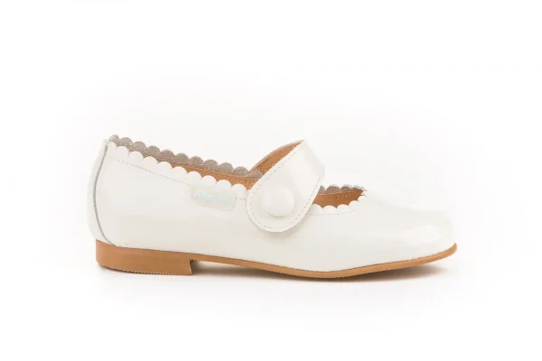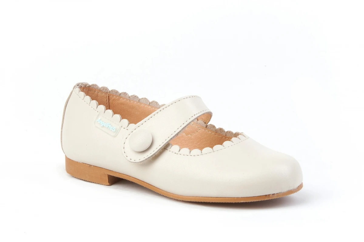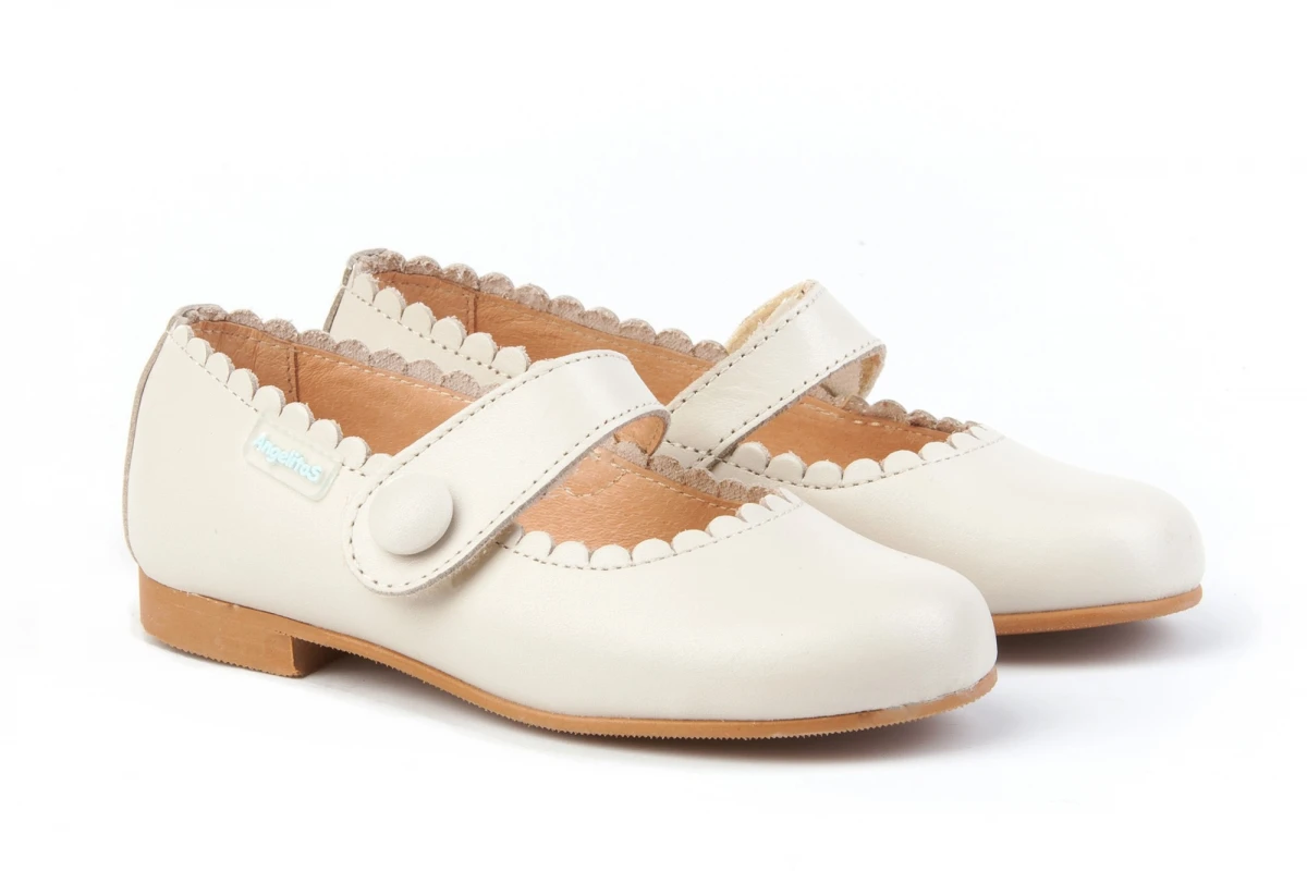 Las francesitas más clásicas, suaves y blanditas. Zapato tipo francesita con adorno en forma de botón, fabricado en napa de piel bovina y con sistema de cierre de velcro. La parte interior está fabricada con forro de piel natural, protector de punteras y talones, planta con puente anatómico y suela de cuerolite antideslizante. Calzado diseñado y fabricado en España.