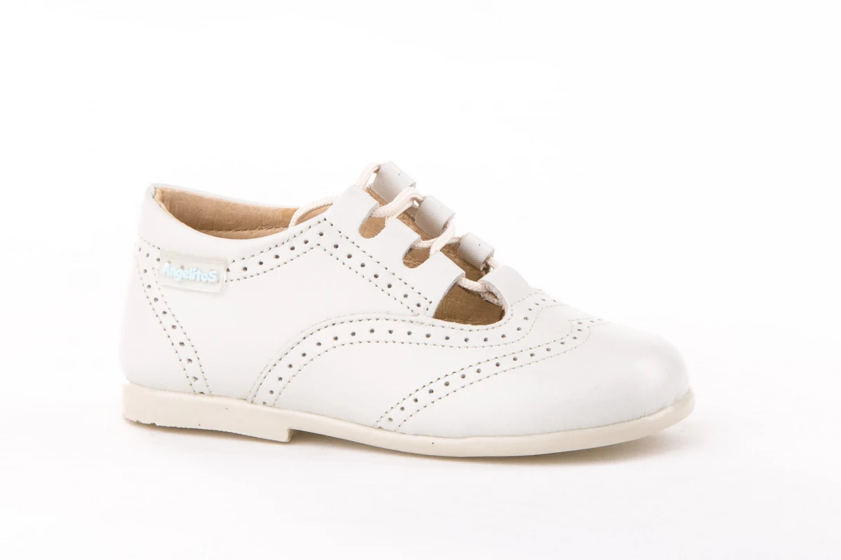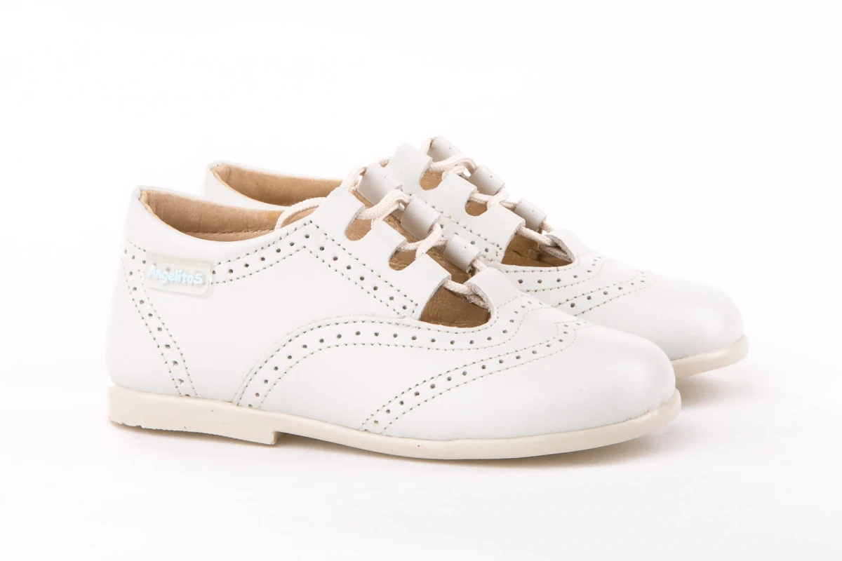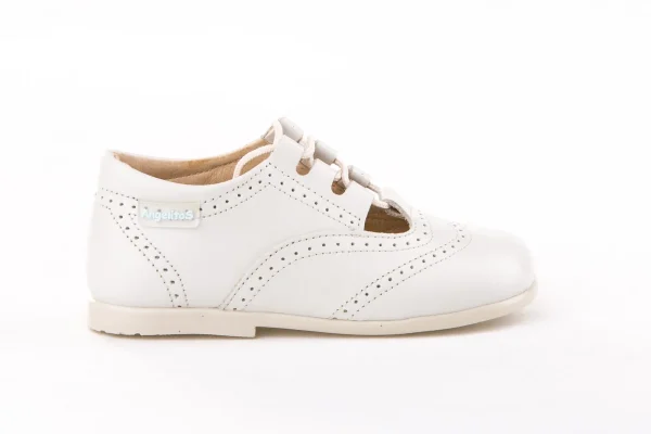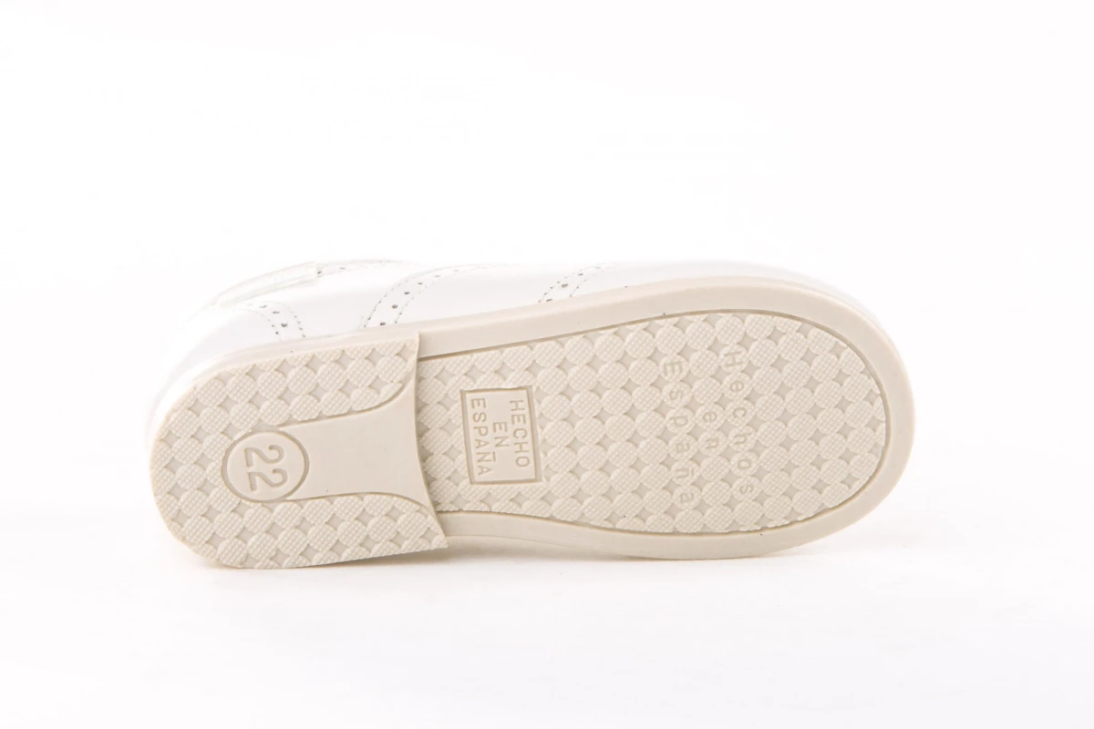 Las inglesitas de siempre, suaves y blanditas. Ideales para los pies de los más pequeños. Zapato tipo inglesita fabricado en napa de piel bovina con sistema de cierre de cordones. La parte interior está fabricada con forro de piel natural, protector de punteras y talones, planta con puente anatómico y suela de goma antideslizante. Calzado diseñado y fabricado en España.