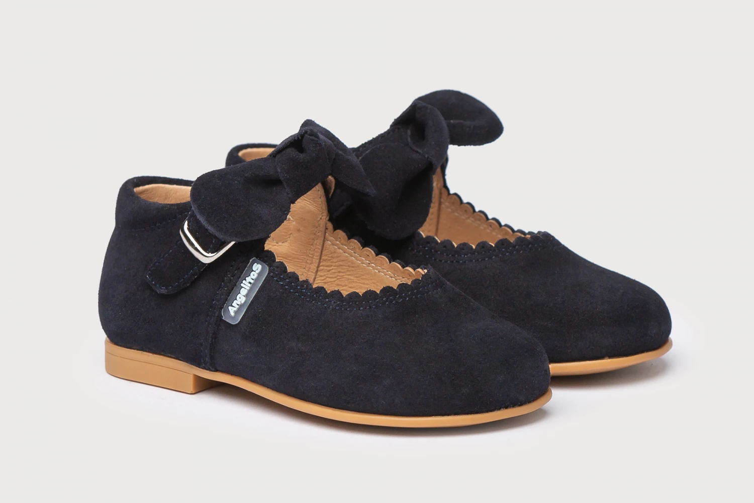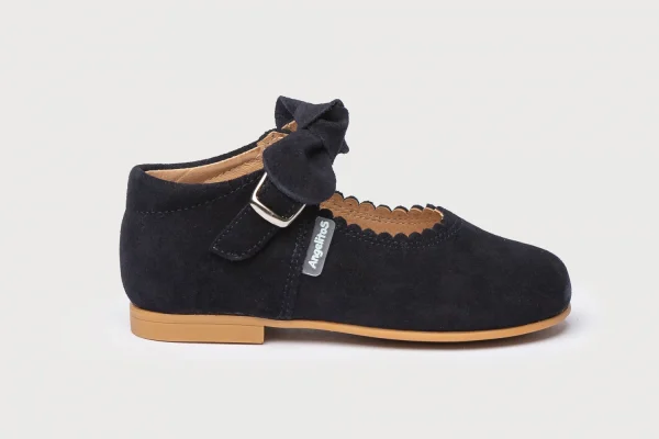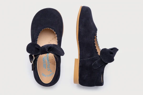 Las merceditas de siempre, suaves y blanditas. Ideales para los pies de los más pequeños. Zapato tipo mercedita fabricado en ante afelpado de piel bovina con adorno en forma de lazo y sistema de cierre de hebilla. La parte interior está fabricada con forro de piel natural, protector de punteras y talones, planta con puente anatómico y suela de goma antideslizante. Calzado diseñado y fabricado en España.