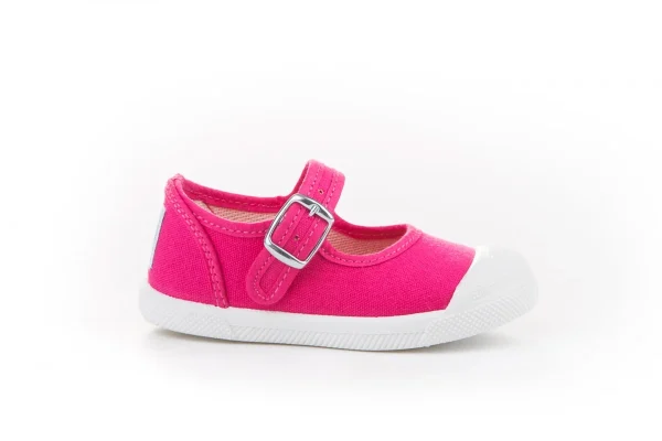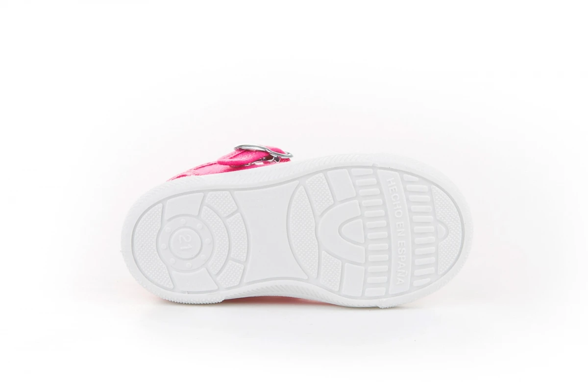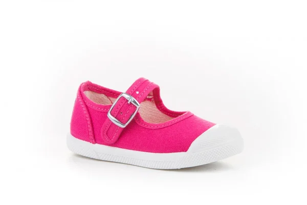 Calzado infantil de lona con suela antideslizante para mayor seguridad en cada paso. Cierre con hebilla ajustable que facilita un calce preciso y cómodo. Ideal para acompañar el día a día de los más pequeños con resistencia y sujeción.