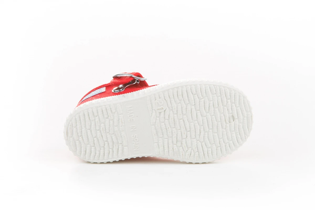 Calzado infantil con suela antideslizante y cierre ajustable para mayor seguridad y comodidad en cada paso. Ideal para el uso diario, ofrece resistencia y facilidad de limpieza gracias a su tejido de lona. Fabricado en España con materiales duraderos.
