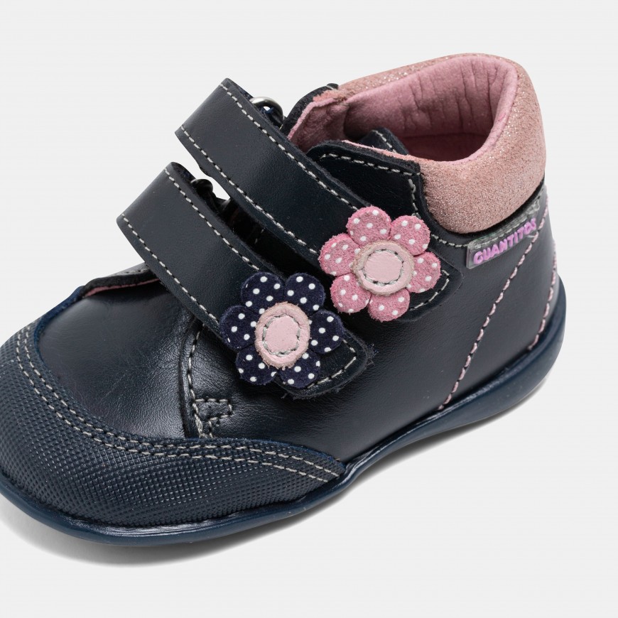 Espectacular botita de bebé de primera calidad, confeccionada en PIEL PREMIUN, super confortable, y con puntera de goma anti-rozaduras. Con cierre de velcro regulable para un ajuste perfecto, horma semi cuadrada que mejora el calce en todo tipo de pies y talón flexible acolchado, diseñado para proteger el tobillo sin oprimirlo. Un calzado ideal, gracias además a su suela de goma ligera, antideslizante, super resistente y no amortiguada. Donde incorporamos nuestro forro Microlining super absorbente y más transpirable que la piel. Con propiedades termorreguladoras, antialérgicas, antibacterianas y resistente al roce, y plantilla extraíble plana sin anatómicos, super transpirable, y anti-bacterias. Un material de excepcional calidad que le ayudará a controlar el sudor y mantendrá sus pies siempre protegidos. Con estas botitas, tu bebé calzará siempre a la moda, con todo el estilo y la mejor calidad de Guantitos.