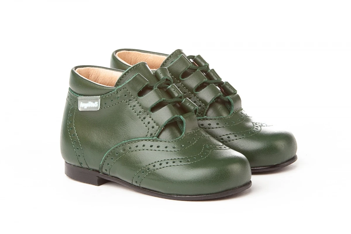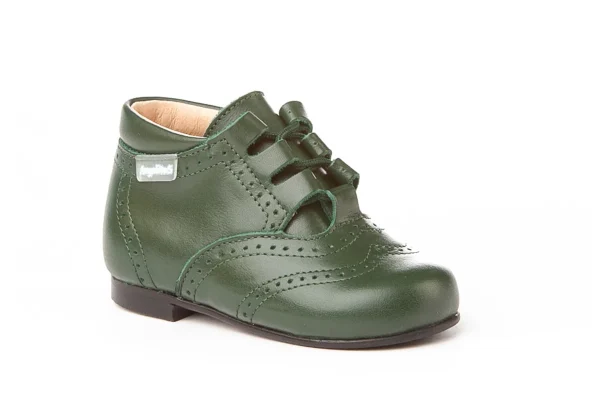 Una línea clásica. Cómodos y blanditos, perfectos para los pies de los más pequeños. Zapato tipo botita inglesita con el talón más alto con fabricado en napa de piel bovina con sistema de cierre de cordón. La parte interior está fabricada con forro de piel natural, protector de punteras y talones, planta con puente anatómico y suela de goma antideslizante. Calzado diseñado y fabricado en España ideal para preandantes y niños que ya han empezado a dar sus primeros pasos.