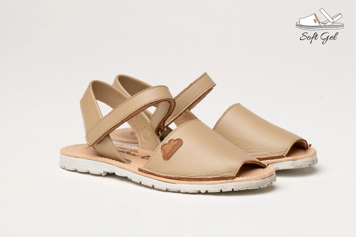 Unas menorquinas ligeras, suaves y flexibles. Zapato tipo menorquina fabricado en napa de piel bovina con sistema de cierre de velcro Go & Back. La parte interior está fabricada con forro de piel natural, planta forrada de piel con gel-látex y memory foam. Suela de goma antideslizante. Calzado diseñado y fabricado en España.