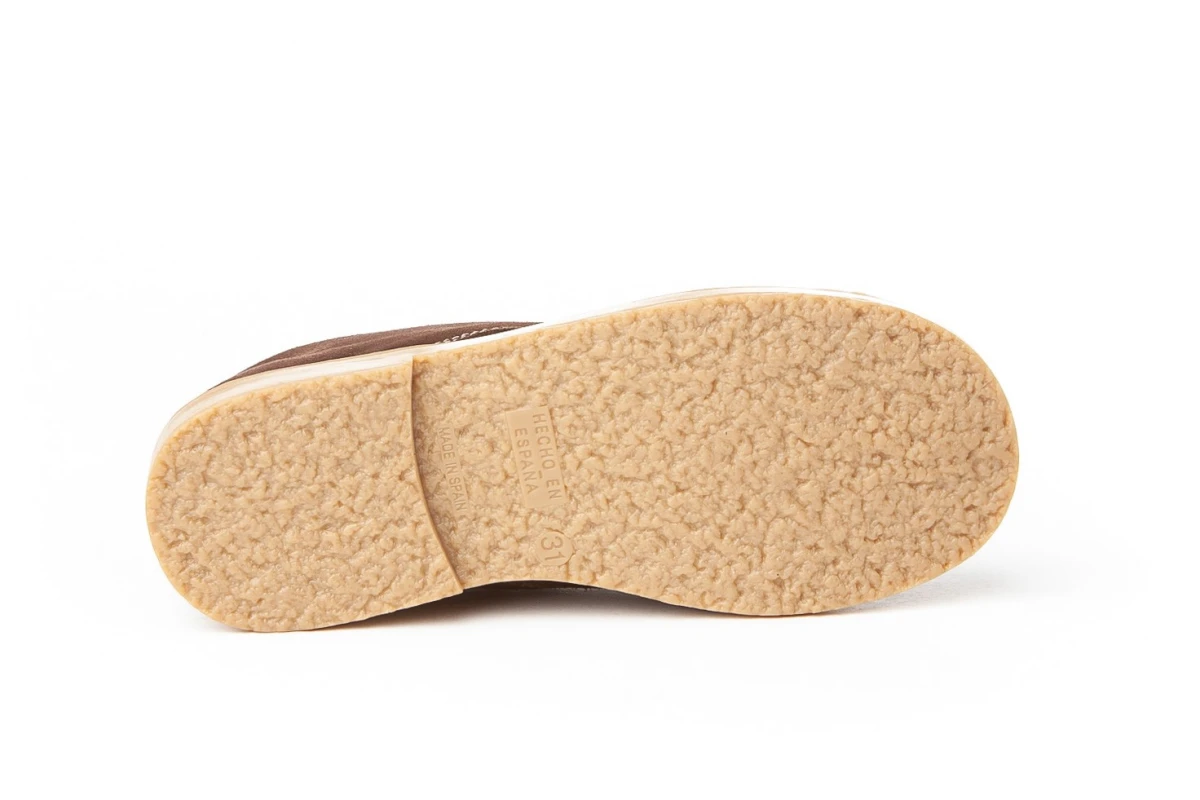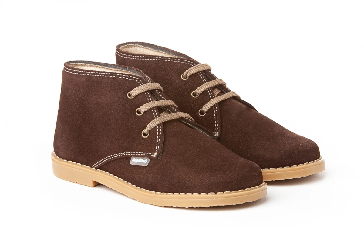 Las pisakakas de siempre. Cómodas y flexibles, zapato tipo botita fabricado en serraje afelpado de piel bovina con sistema de cierre de cordón. La planta y la parte interior está fabricada con forro textil AngelitoS, protector de punteras y talones, suela de goma antideslizante. Calzado diseñado y fabricado en España