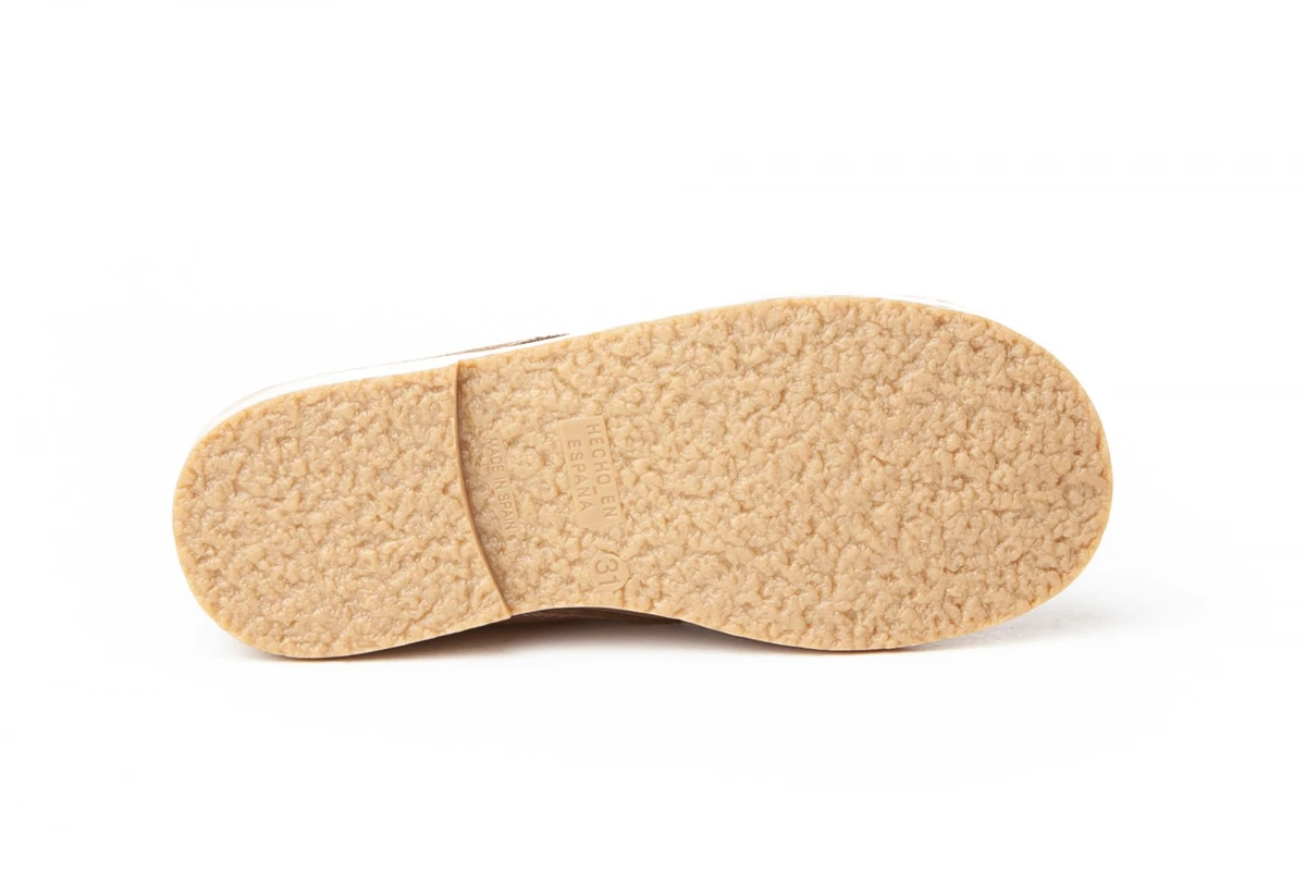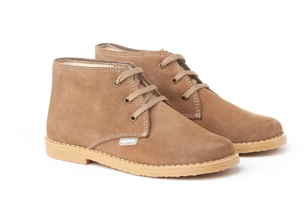Las pisakakas de siempre. Cómodas y flexibles, zapato tipo botita fabricado en serraje afelpado de piel bovina con sistema de cierre de cordón. La planta y la parte interior está fabricada con forro textil AngelitoS, protector de punteras y talones, suela de goma antideslizante. Calzado diseñado y fabricado en España.