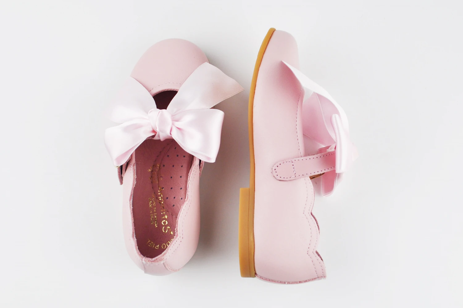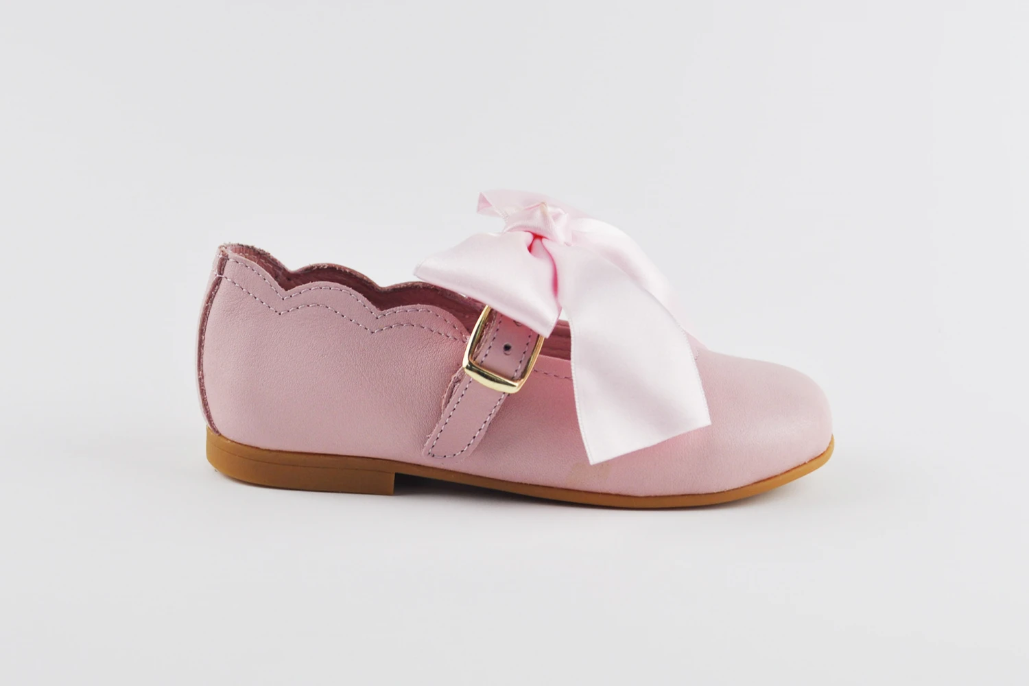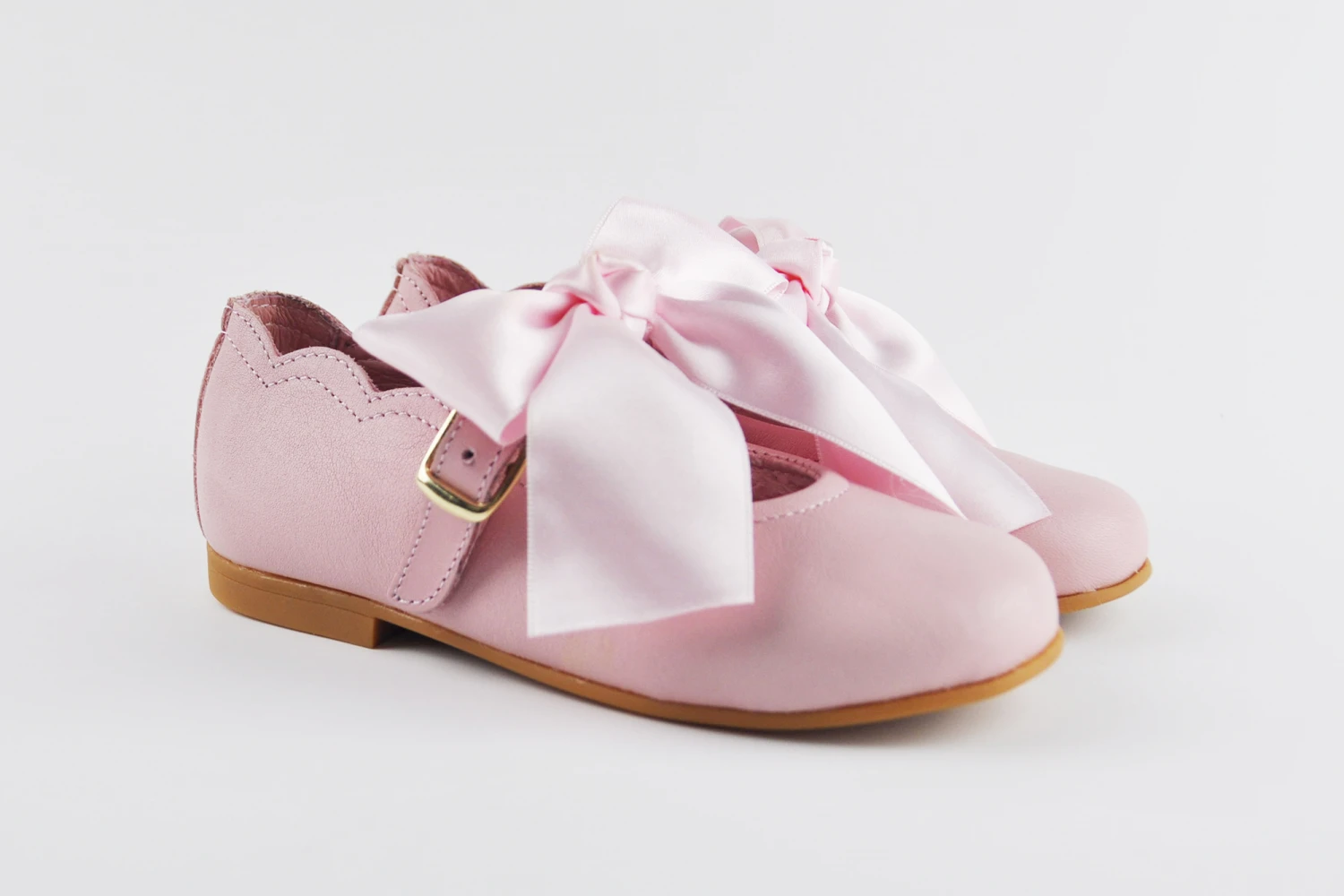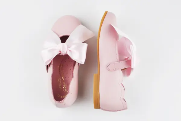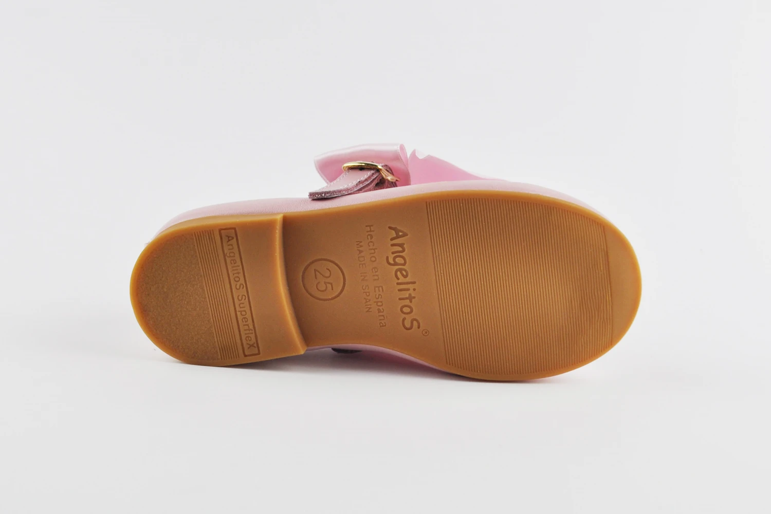 Unas francesitas elegantes, suaves y blanditas. Zapato tipo francesita fabricado en napa de piel bovina con lazo de satén al tono y sistema de cierre de hebilla. La parte interior está fabricada con forro de piel natural, protector de punteras y talones. Planta interior con puente anatómico y nuestra nueva suela exterior «AngelitoS SuperfleX» fabricada en TPU antideslizante de alta calidad. Calzado diseñado y fabricado en España.
