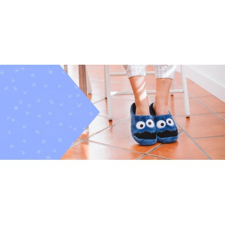 Zapatillas de estar por casa de calidad excepcional, calentitas, ligeras y suaves. Diseño divertido «Monstruo de las Galletas».. Originales, divertidas e increíblemente cómodas.