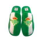 Zapatilla para casa del Real Betis, tejido Suave en blanco y verde ademas de ser calentitas, escudo bordado del Real Betis.