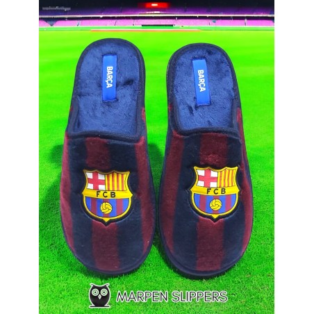 Zapatilla para casa del F.C. Barcelona, tejido Suave en Blau Grana, ademas de ser calentitas, escudo bordado del F.C. Barcelona .