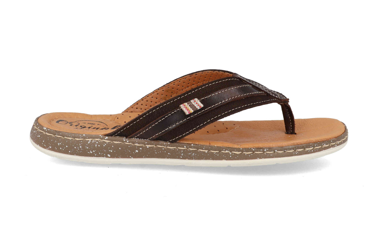 Sandalias para hombre esclavas baratas de piel, con planta en piel y gel , una sandalia hecha toda en piel, esta sandalia está diseñada con una pala con pespuntes a color y unos adornos cosidos, y bandera, su planta es de gel lo que es un material muy blandito y hace que el pie amortigüe el impacto en cada pisada, su piso es de goma y con una altura de 2,5 cm. Es una sandalia de caballero muy cómoda, ideal para el tiempo libre, tallas: 39 al 46, Marca Original ST, Fabricado en Elche, España nueva de la colección de primavera verano 2024.