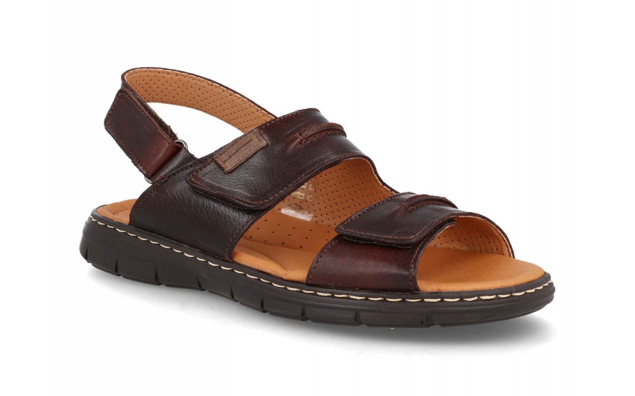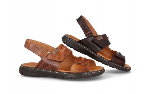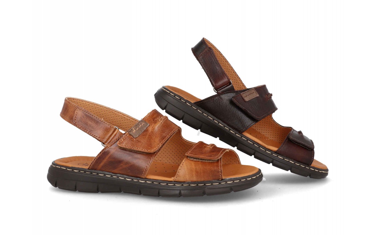 Sandalias de piel caballero con velcros. Estas sandalias de hombre llevan un velcro en la parte delantera y otro en la trasera para ajustar perfectamente al pie para personas que tienen el pie fino o lo tienen a la inversa ancho especial.