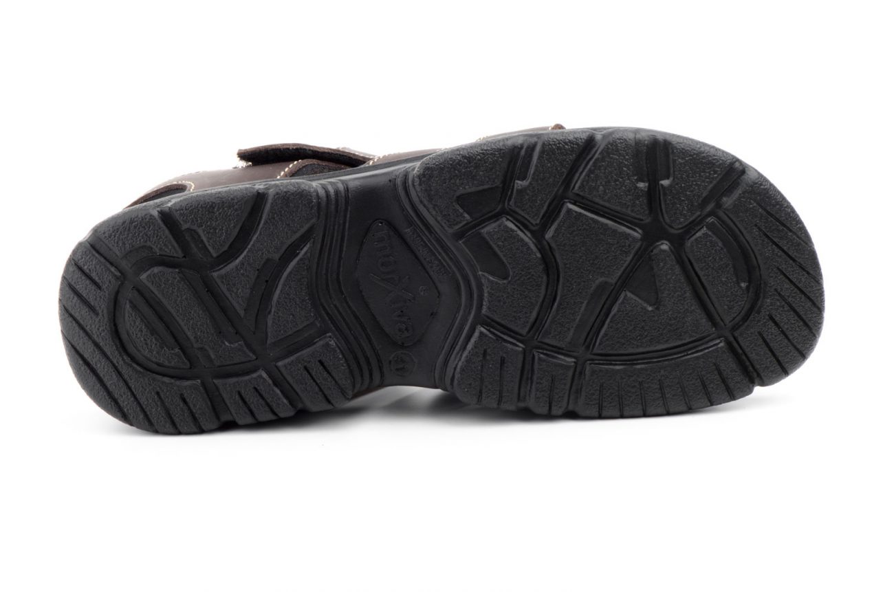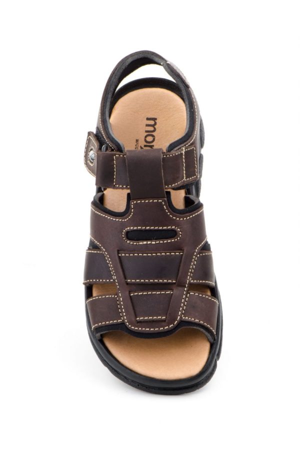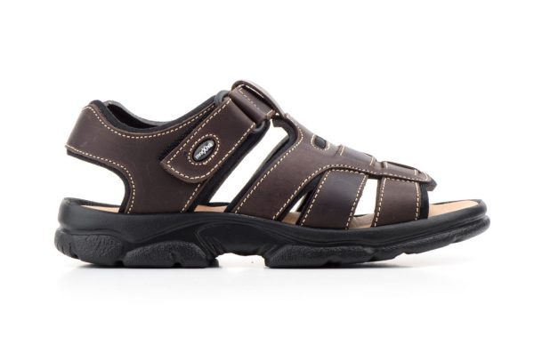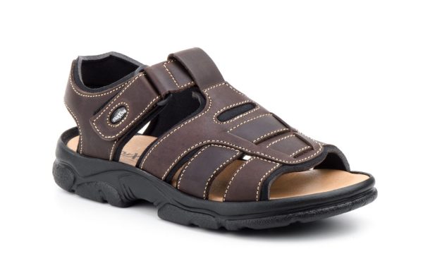Sandalias de hombre realizadas en piel de color negro con plantilla de piel anatómica, cierre con velcro y suela de goma antideslizante. Disponible en tallas del 39 al 48.