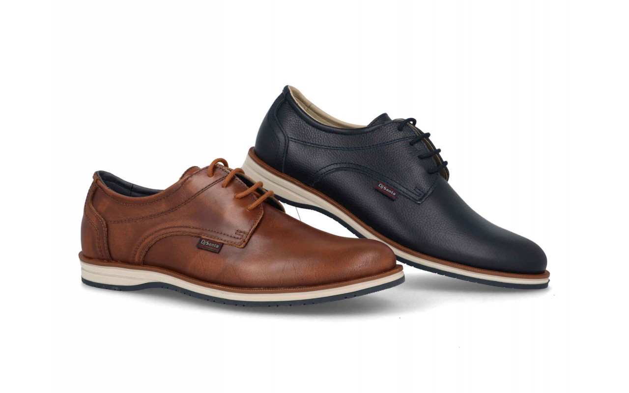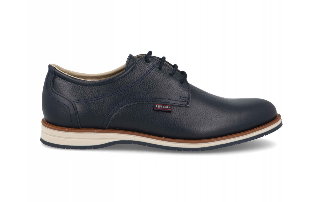 Zapatos hombre casual piel Dj Santa, con el material forro interior de piel y textil, corte exterior estilo blucher de piel, el cierre es con cordoneras enceradas se suministras dos colores cuero y marino, Un modelo muy actual que combina muy bien con pantalones chinos, vaqueros un modelo muy elegante, juvenil y actual