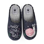 Zapatillas de casa muy cómodas, fabricadas en fieltro marino con bordados y original diseño frase «Mente Feliz, Vida Feliz».
