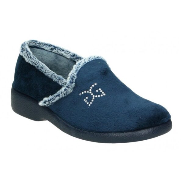 Calzado diseñado para ofrecer confort y calidez en el hogar gracias a su interior forrado. Su suela antideslizante garantiza seguridad en cada paso, mientras que el acabado en tonos marinos añade un toque de discreción. Ideal para uso diario en interiores.