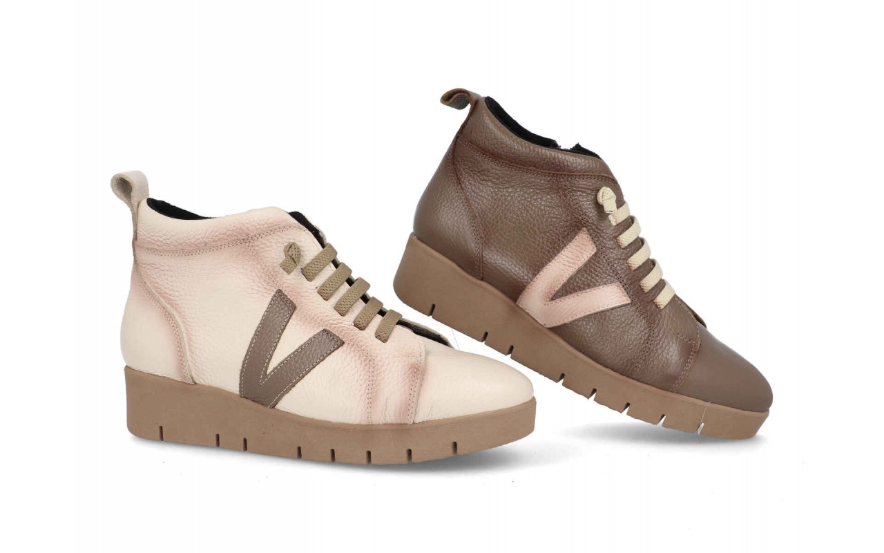 Botines casual sport cómodos de piel, realizado con las mejores pieles y se ajusta al pie como un guante, Es muy ligero y polivalente, la suela es de goma antideslizante, el sistema de cierre es con cremallera, el material interior es de piel, el material exterior es de piel y textil, la plantilla es de piel acochada, Es un calzado ideal para caminar, pasear, trabajar, Marca BDA fabricados en Elche, Alicante, España.