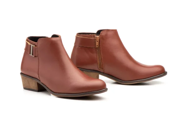 Estas botas bajas combinan un diseño funcional con un cierre lateral que facilita su uso. Su suela antideslizante y el tacón medio aportan estabilidad y comodidad durante todo el día. Perfectas para completar looks tanto casuales como formales.