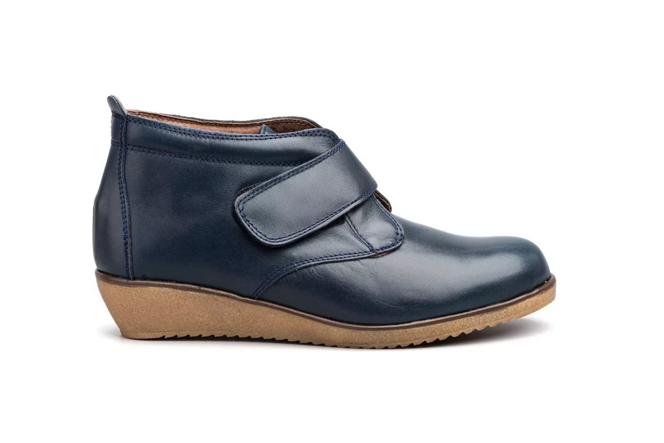 Botín Cómodo Piel Mujer Tupie, Unos botines de señora para trabajar, andar, muy vendidos por su diseño y su confort, con piso de goma para evitar resbalones. Un botín con cuña de alto de 4,5 cm muy bien equilibrado al pie femenino, Hecho en España, Material corte exterior de piel muy blandita, se ajusta muy bien al pie como un guante, el material forro interior es textil, el cierre es de velcro.