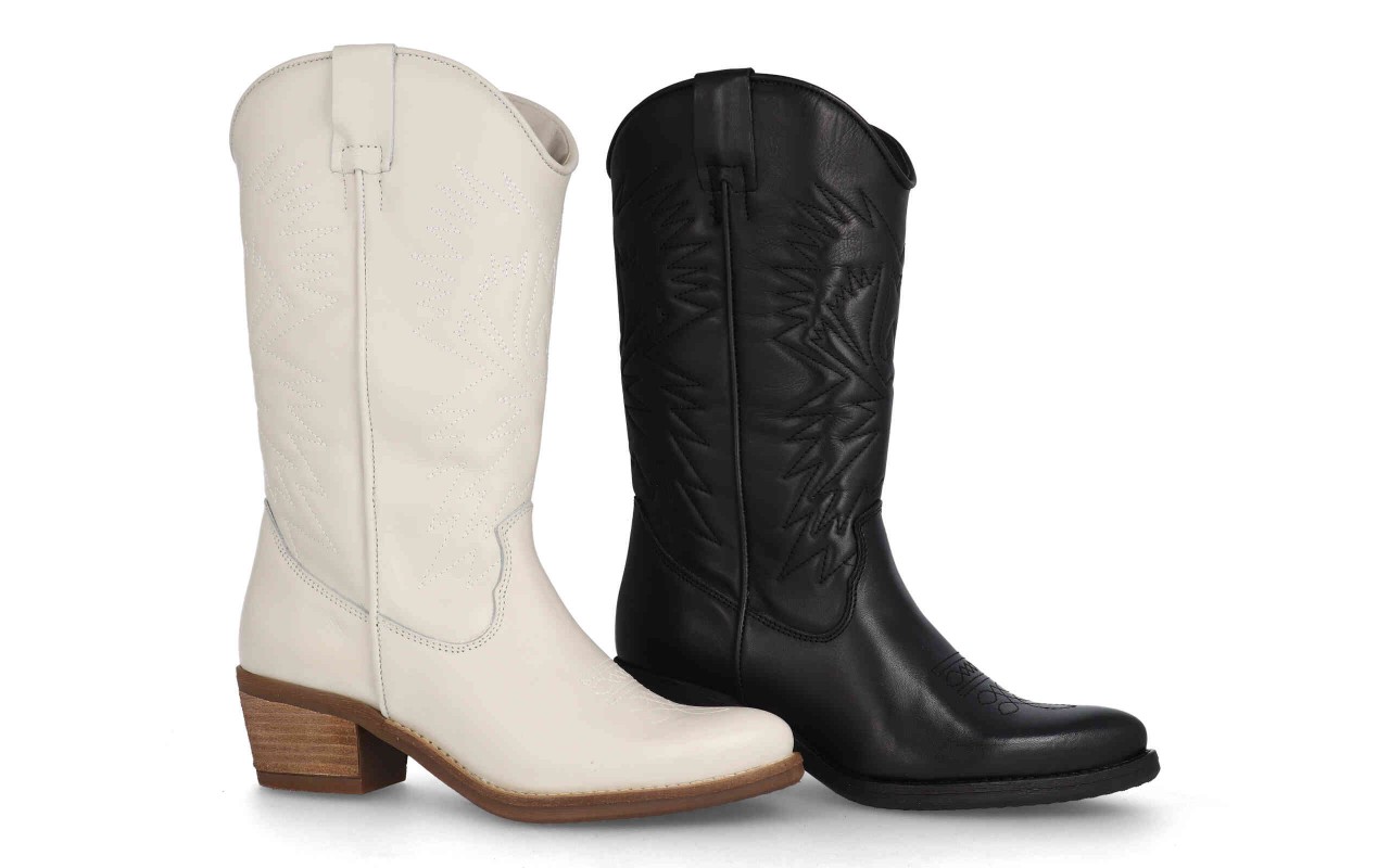 Botas mujer cawboy piel, con tacón cubano de 5 cm, color cuero, con la plantilla de piel, el material corte exterior es de piel con adornos cosido, el forro interior de piel y tela, Unas botas camperas de mujer nuevas de esta temporada otoño invierno.