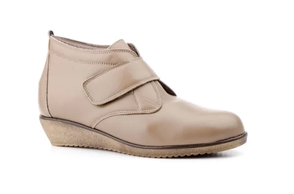 Botín Cómodo Piel Mujer Tupie, Unos botines de señora para trabajar, andar, muy vendidos por su diseño y su confort, con piso de goma para evitar resbalones. Un botín con cuña de alto de 4,5 cm muy bien equilibrado al pie femenino, Hecho en España, Material corte exterior de piel muy blandita, se ajusta muy bien al pie como un guante, el material forro interior es textil, el cierre es de velcro.