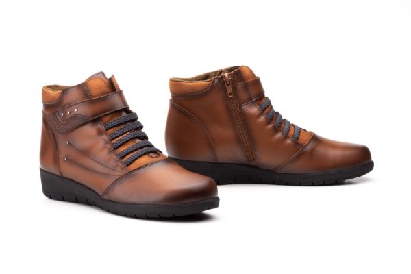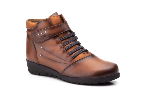 Botines mujer confort cuña, con un poco de cuña de 4 cm de altura, corte exterior de piel, forro interior textil, plantilla piel acolchada, unos botines para mujer muy cómodos con la piel muy blandita lisa en la pala delantera.