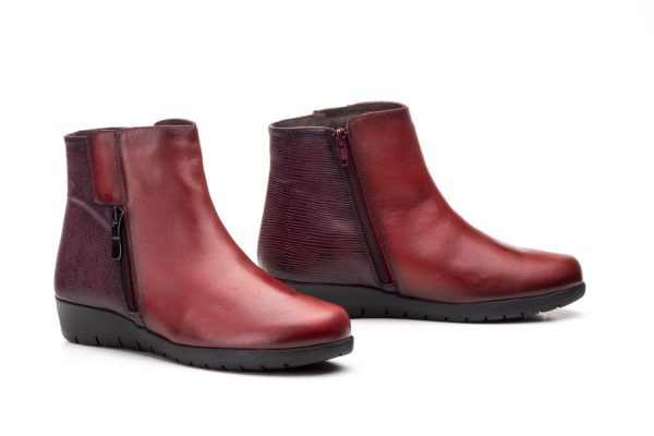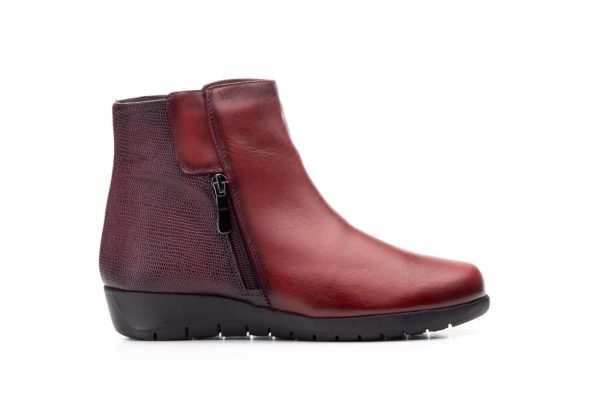 Botines mujer cómodos, de piel con cremallera muy confortables, material exterior de piel extra suave y en la parte trasera cosido efecto bombeado, material interior textil, sistema de cierre con cremallera. Fabricado en España