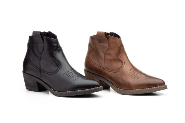 Botines camperos mujer de piel, Unos botines camperos o de montar muy juveniles con adorno en el corte lateral y con tacón cubano de 5 cm, de altura, Estos botines no pasan de moda se lleva temporada tras temporada, es atemporal, con un corte muy actual, El material exterior es de piel, el forro interior es textil y la plantilla de piel, el cierre es con cremallera, Color Negro y cuero.