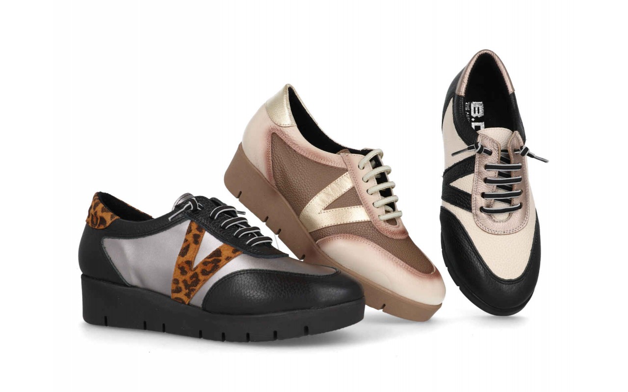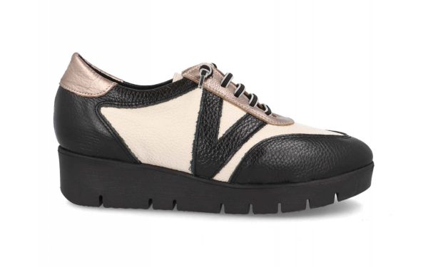 Zapatos cuña cómodos mujer de piel, cordoneras elásticas tipo mocasín muy fáciles de poner y quitar, piel exterior muy suave, cuña de 4 cm, plantilla extraible textil acolchada colores Beige con Negro, taupe con oro, leopardo con plomo, tallas 35 al 41, Marca Bda, hechas en España. ref: 123