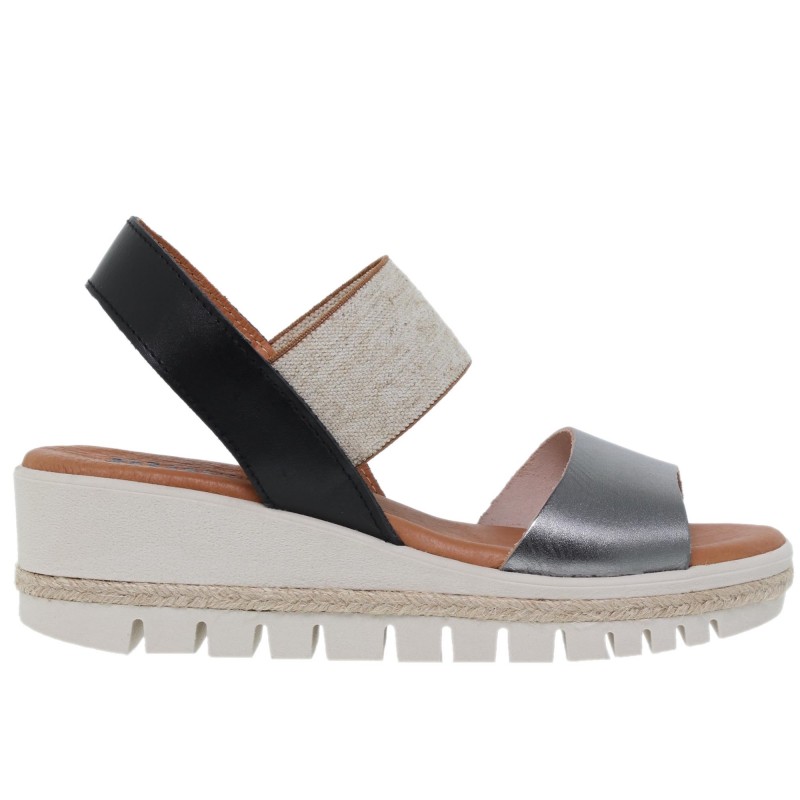 Sandalias piel cómodas mujer, con una cuña 5 cm, suela dentada flexible muy confortable plantilla piel y gel, sea ajustan al piel perfectamente, forro piel, Marca Blusandal hechas en Elche, Alicante, España.