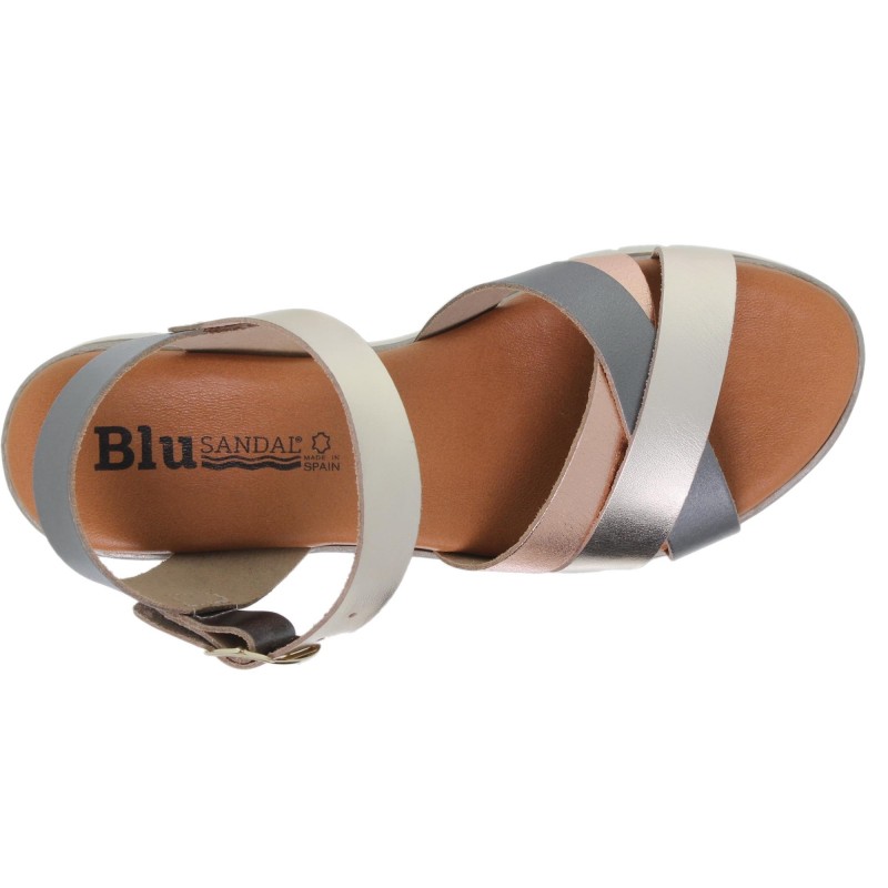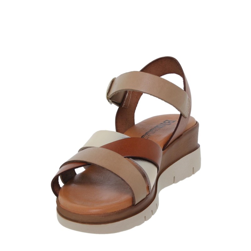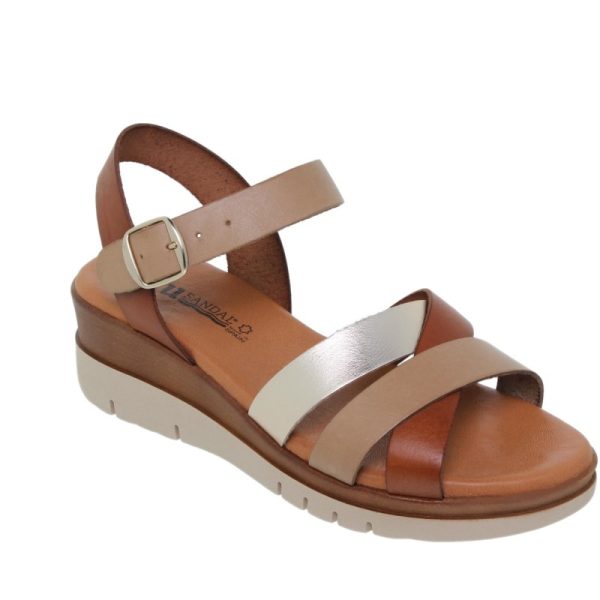 Sandalias cuña cómodas piel, elegantes y cómodas, con la plantilla de gel y piel, una sandalias con la pala en tiras a colores, con planta de gel y piel confort total unas sandalias muy confortables, llevan un pequeña o media cómoda cuña de unos 5 cm.