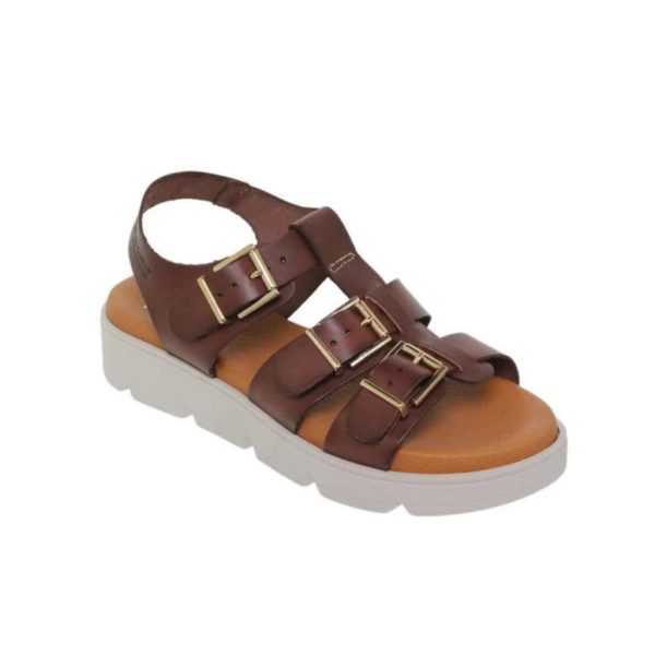 Sandalias cómodas hebillas de piel para mujer, con plantilla de piel y gel súper cómodas y elegantes, marca blusandal, hechas en Elche, Alicante, España.