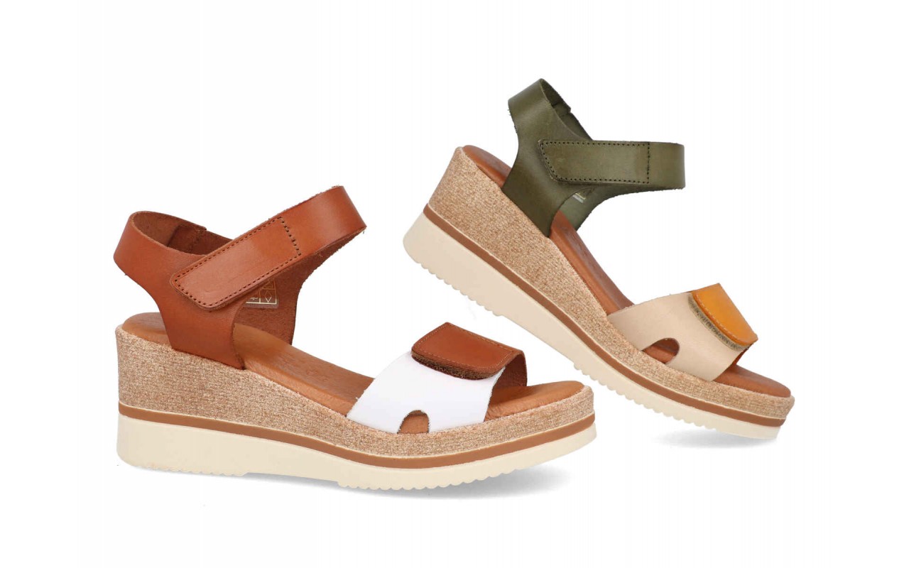 Sandalias pies finos estrechos, incorpora velcros en la pala y el tobillo para las personas que tienen el pie fino o estrecho y se ajuste perfectamente a su pie, plantillas de piel y gel muy cómodas, corte exterior piel, forro interior piel, unas sandalias con plataforma y cuña de 6 cm de altura.