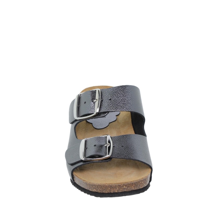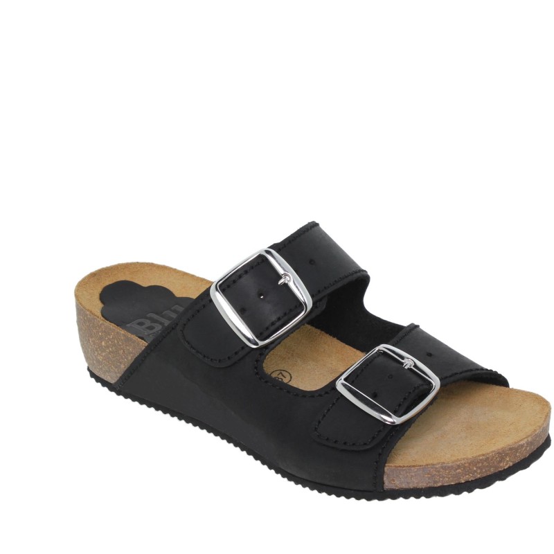 Zuecos mujer bio cuña hebillas, con hebillas anchas, con plantilla de piel y gel muy cómodas, son muy frescas e ideales para que el pie no sude, su planta interior de piel incorpora una almohadilla que proporcionan un gran confort, su fabricación es en piel de vaquetilla a color, una sandalia muy actual, ideal para caminar con gran comodidad y transpirabilidad.