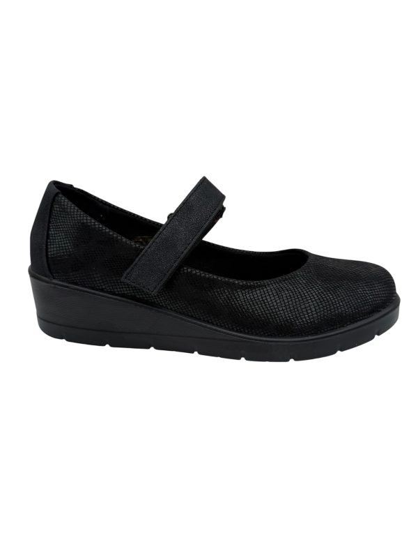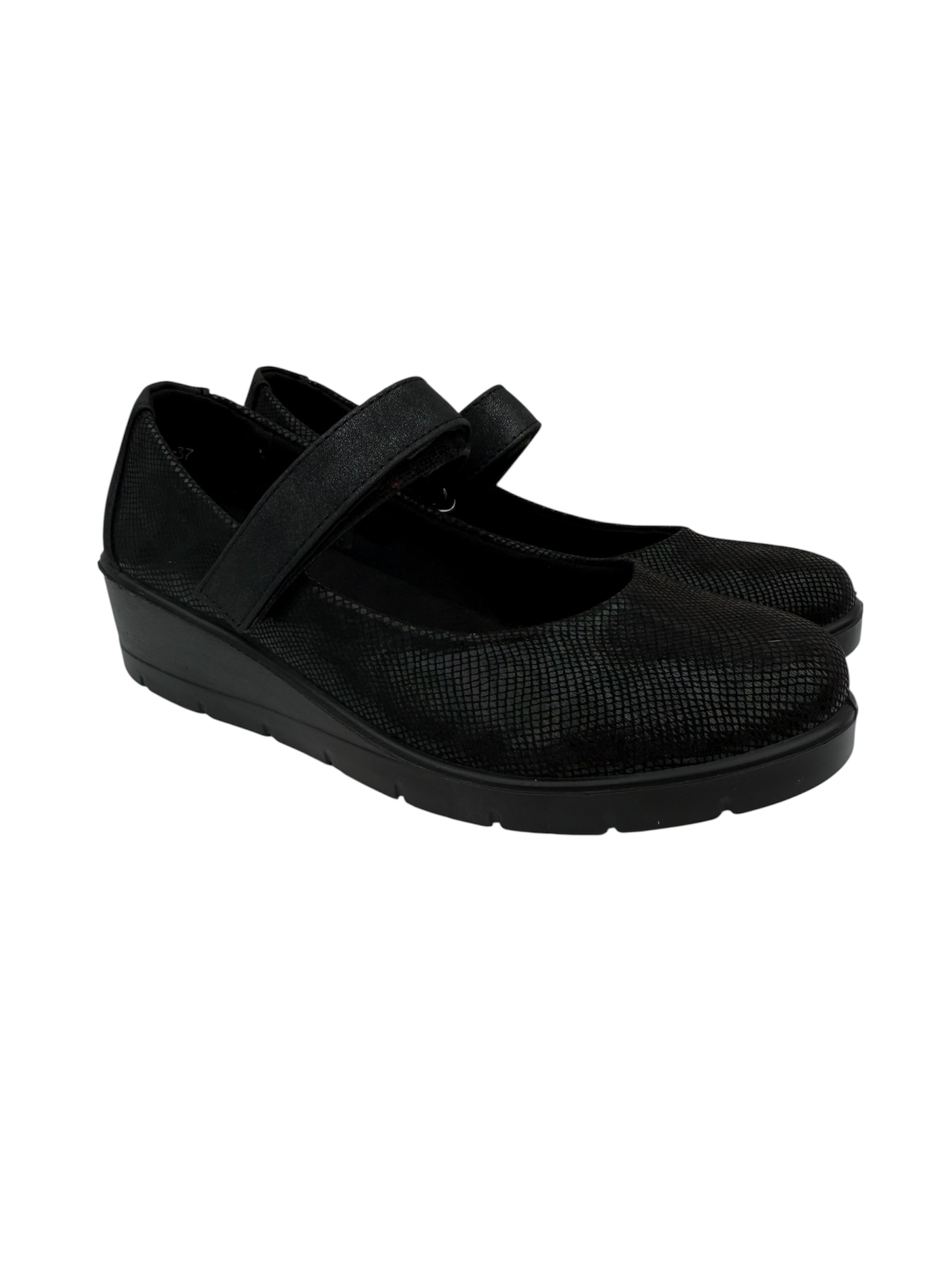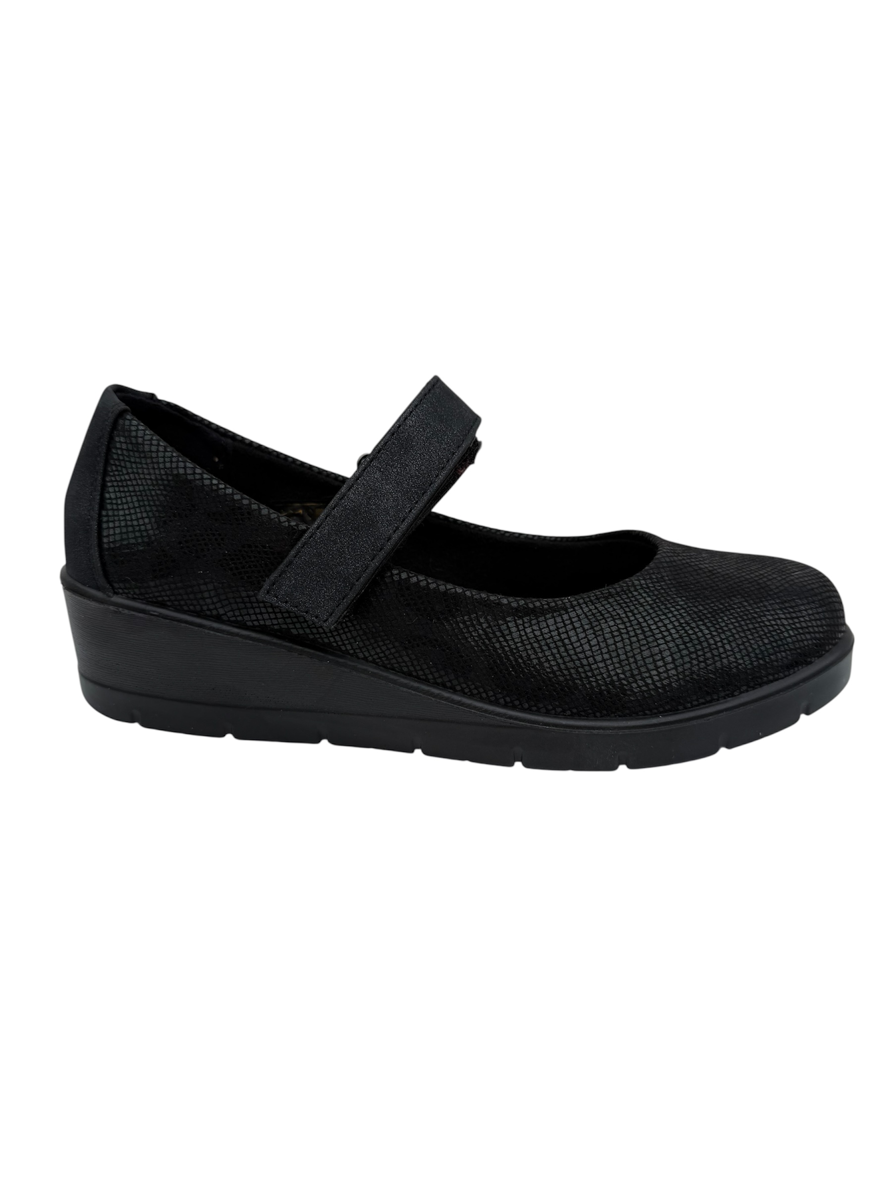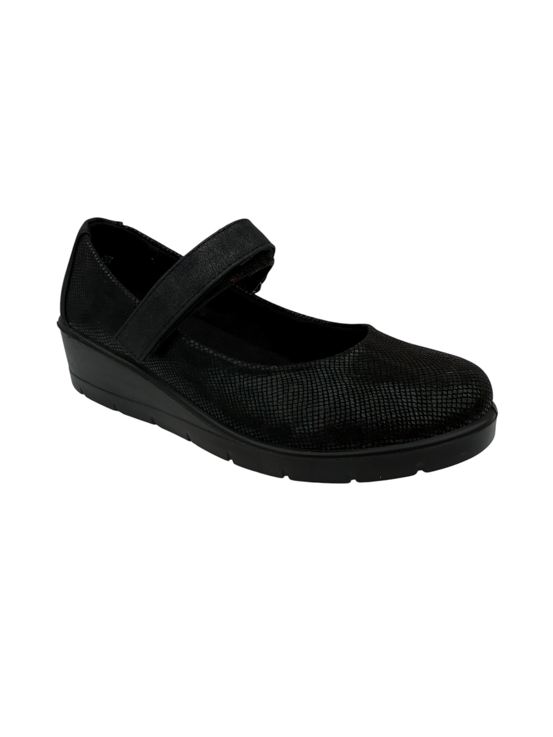 Elegantes zapatos Mary Jane negros con textura sutil, diseñados para ofrecer comodidad y soporte durante todo el día. Ideales para uso profesional o casual, cuentan con cierre ajustable para un calce preciso y suela antideslizante que garantiza seguridad en cada paso. Perfectos para quienes buscan estilo y bienestar en un solo producto.