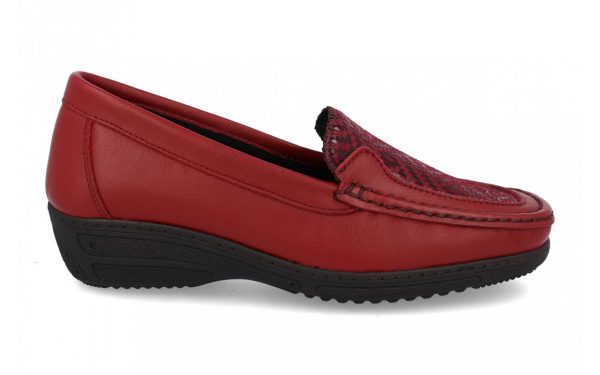 Zapatos cómodos piel para mujer tipo mocasín muy confortable, plantilla de piel, corte exterior de piel muy suave muy cómodos, Color: Negro, rojo, marino y marrón. Fabricado en Elche, Alicante, España.