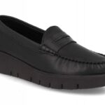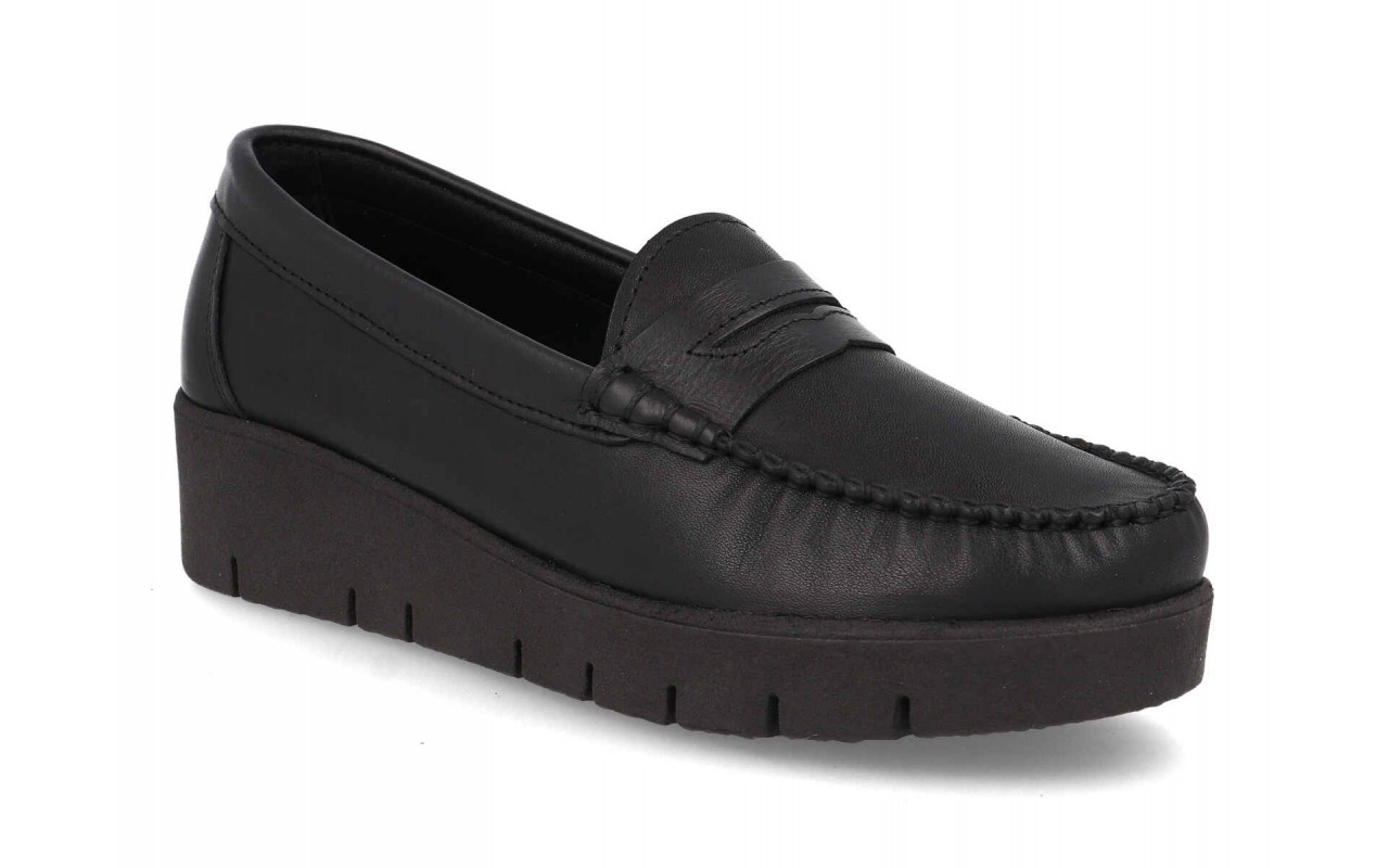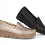 Zapatos cómodos piel mujer, una de cuña 4 cm muy confortables, tipo mocasines, plantilla piel, tallas 35 al 41. marca be Relax hechos en Elche.