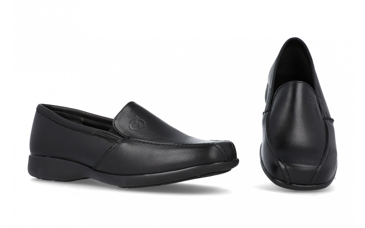 Este calzado combina diseño sencillo con comodidad para uso diario. Dispone de suela antideslizante que mejora la estabilidad y piel natural que garantiza transpirabilidad. Ideal para jornadas largas que exigen confort y funcionalidad.