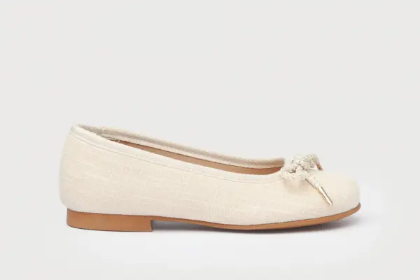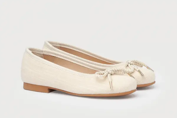 Hay momentos en la vida que son mágicos por sí solos. Elegantes y cómodos, zapato tipo bailarina con adorno cordón rizado metalizado al tono y platino fabricado en tejido de lino 100% algodón. La parte interior está fabricada con Tex-Nature es un forro interior superabsorbente que garantiza una gran transpiración, mayor comodidad y un rápido secado. Sensación Tex-Nature de máxima absorción y secado total. Tex-Nature es un material transpirable y cuenta con un sistema antibacteriano y libre de cromo. La parte interior mantiene un sistema con protector de punteras y talones, planta con forro textil Tex-Nature y suela de cuerolite antideslizante. Calzado diseñado y fabricado en España ideal para celebraciones.