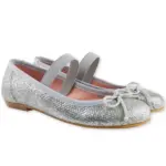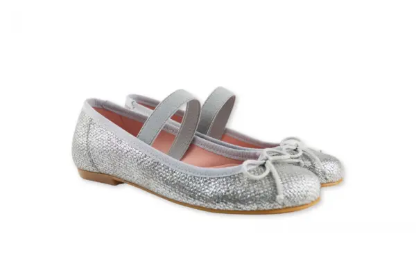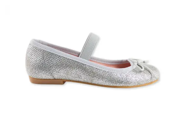 Unas bailarinas súper actuales, suaves y blanditas. Zapato tipo bailarina fabricada en tejido saco metalizado 100 % algodón con lazo al tono y sistema de cierre con elástico. La parte interior está fabricada con Tex-Nature es un forro interior superabsorbente que garantiza una gran transpiración, mayor comodidad y un rápido secado. Sensación Tex-Nature de máxima absorción y secado total. Tex-Nature es un material transpirable y cuenta con un sistema antibacteriano y libre de cromo. Planta interior con forro textil Tex-Nature y suela exterior «AngelitoS SuperfleX» fabricada en TPU antideslizante de alta calidad. Calzado diseñado y fabricado en España.