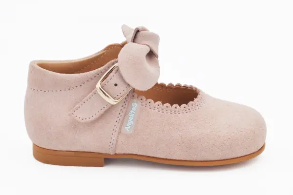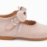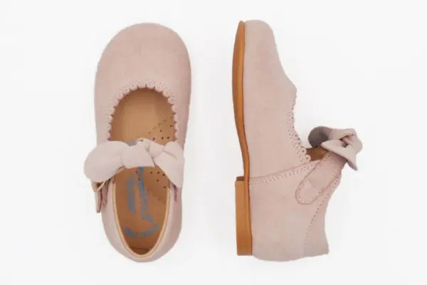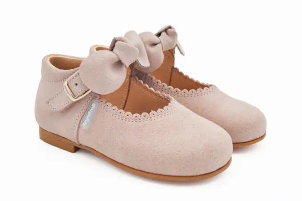 Las merceditas de siempre, suaves y blanditas. Ideales para los pies de los más pequeños. Zapato tipo mercedita fabricado en ante afelpado de piel bovina con adorno en forma de lazo y sistema de cierre de hebilla. La parte interior está fabricada con forro de piel natural, protector de punteras y talones, planta con puente anatómico y suela de goma antideslizante. Calzado diseñado y fabricado en España.