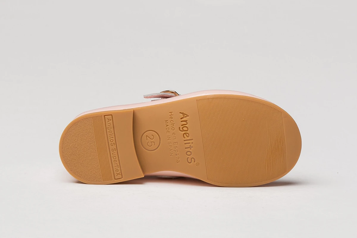 Unas francesitas elegantes, suaves y blanditas. Zapato tipo francesita fabricado en napa metalizada de piel bovina con sistema de cierre de hebilla. La parte interior está fabricada con forro de piel natural, protector de punteras y talones. Planta interior con puente anatómico y nuestra nueva suela exterior «AngelitoS SuperfleX» fabricada en TPU antideslizante de alta calidad. Calzado diseñado y fabricado en España.