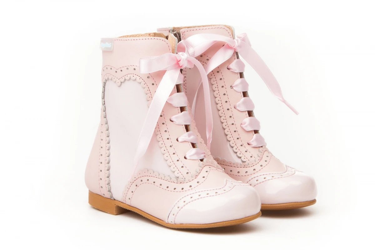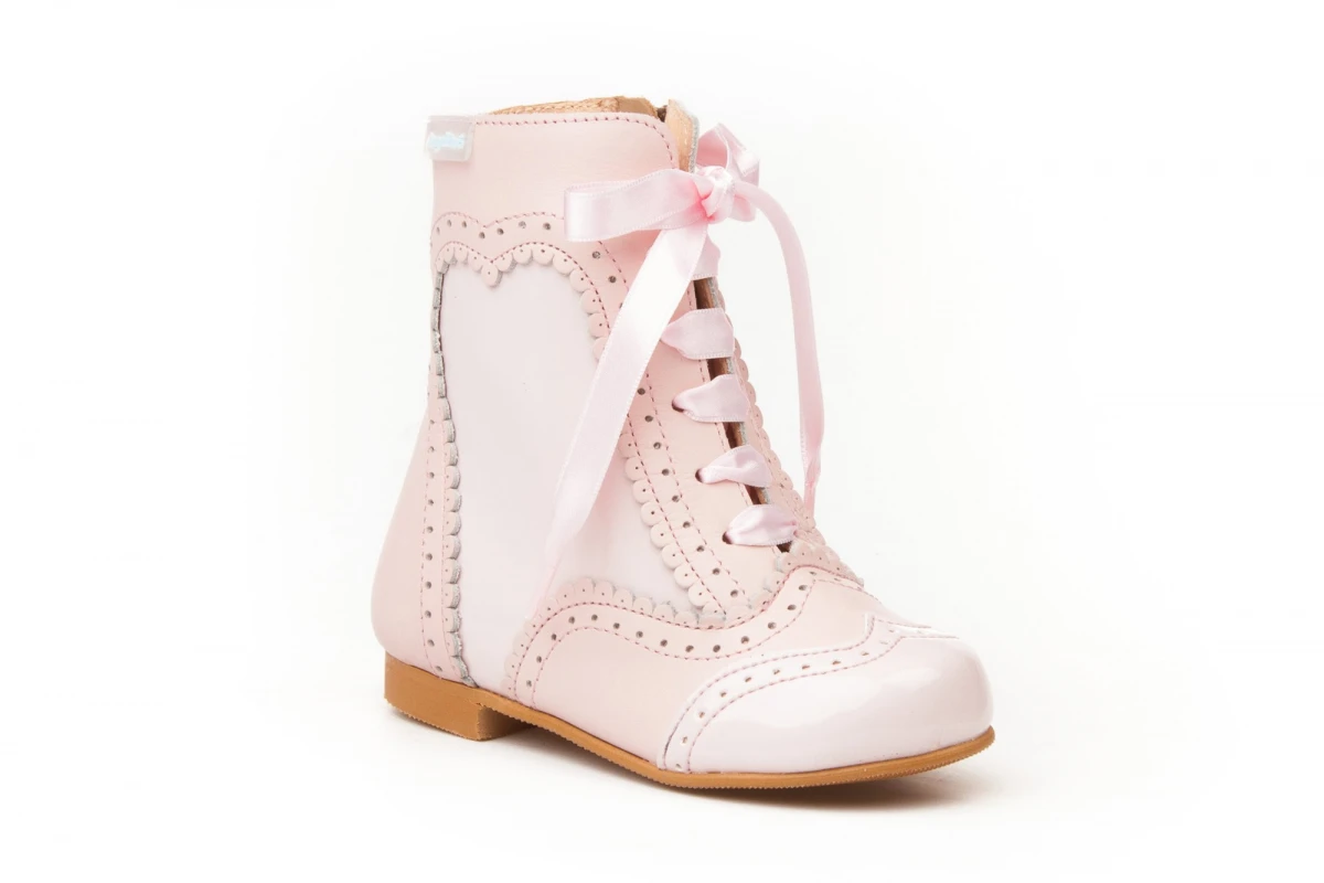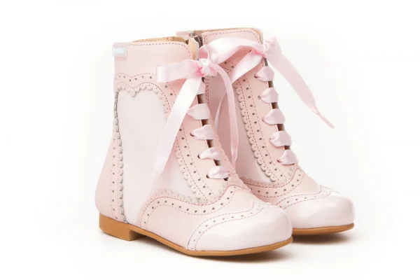 Una línea clásica. Cómodas y blanditas, zapato tipo botita pascualona fabricado en napa-nobuck de piel bovina y tejido charol sintético con sistema de cierre de cordón en cinta de raso. La parte interior está fabricada con forro de piel natural, protector de punteras y talones, planta con puente anatómico y suela de cuerolite antideslizante. Calzado diseñado y fabricado en España.