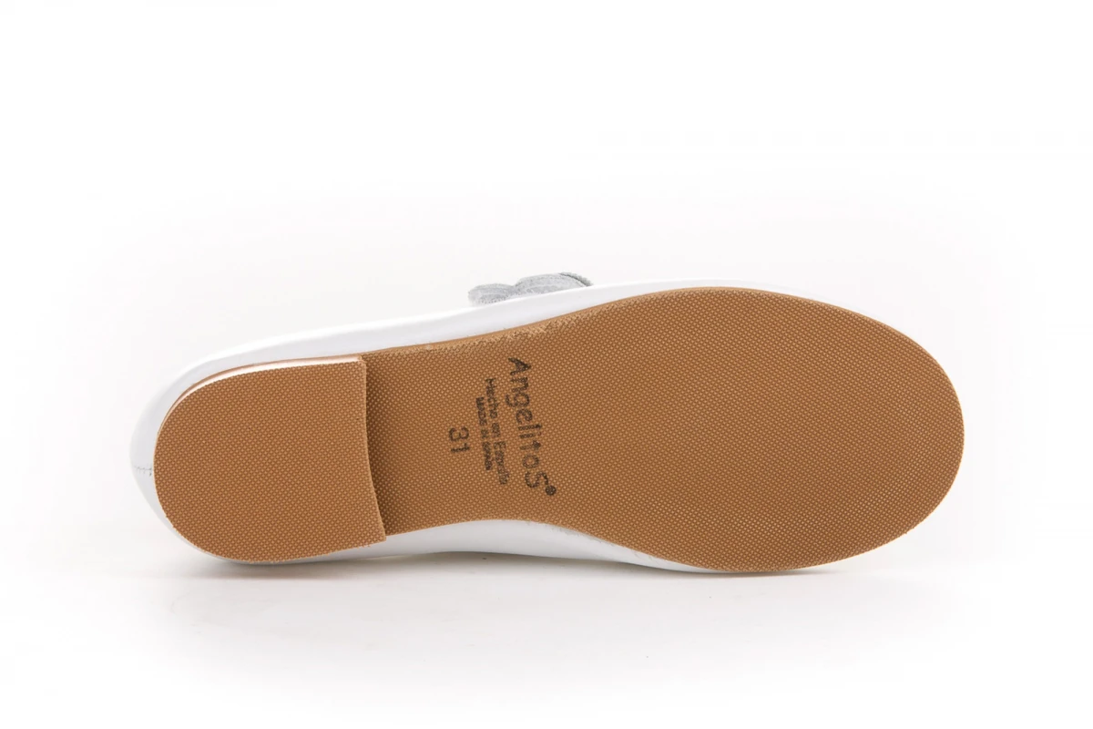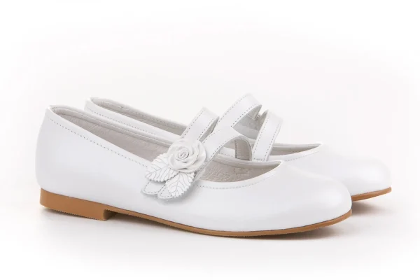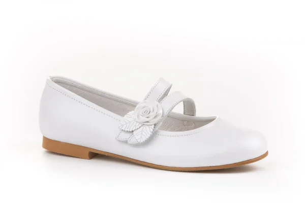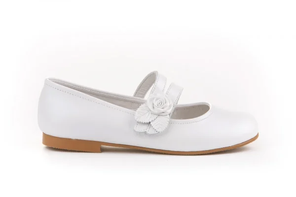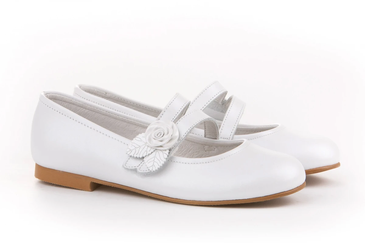 Hay momentos en la vida que son mágicos por sí solos. Elegantes y cómodos, zapato tipo bailarina con adorno Flor & Pétalos y sistema de cierre de velcro fabricado en napa nacarada de piel bovina. La parte interior está fabricada con forro de piel natural, protector de punteras y talones, planta con puente anatómico y suela de cuerolite antideslizante. Calzado diseñado y fabricado en España ideal para celebraciones.